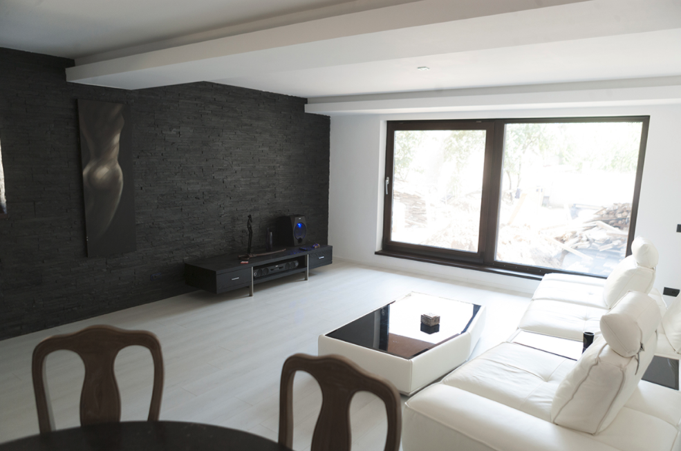 - pereti din piatra naturala, amenajarea unor asemenea pereti este o provocare intrucat necesita cunostinte de design interior, dar si creativitate, in aceeasi masura, livingul fiind si o camera de primire a oaspetilor, ceea ce presupune respectarea unor cerinte specifice de imagine;