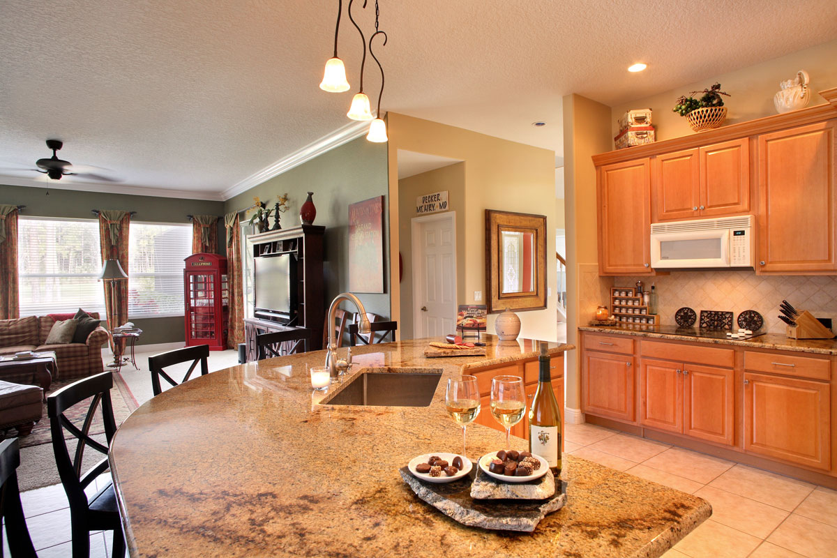 - legatura prin similitudinea amenajarilor din piatra – ceea ce ai in bucatarie pune si-n living (cel putin la nivel de accente). Legatura va fi subtila, insa suficienta pentru a marca o continuitate;