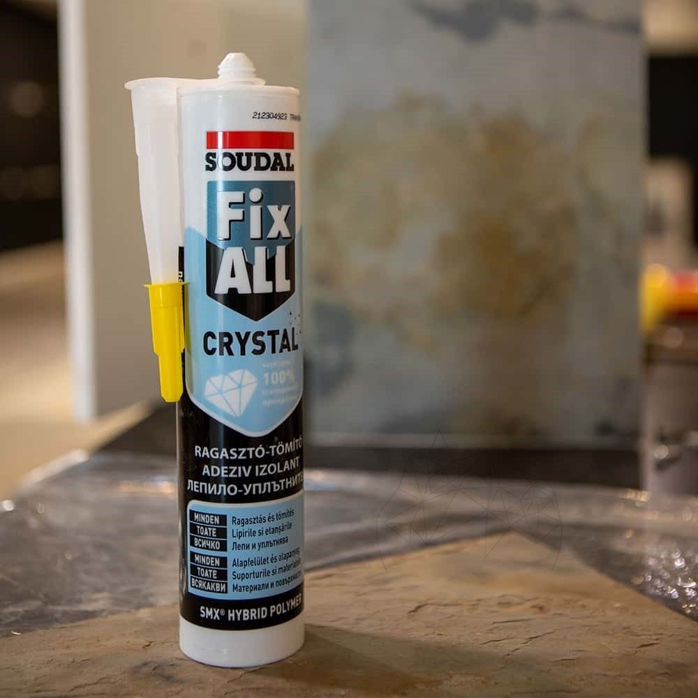Soudal Fix All Crystal: transparent, performante mecanice bune, mare putere de lipire, elastic dupa uscare, usor de aplicat si de finisat, lipiri invizibile pe suprafete transparente.