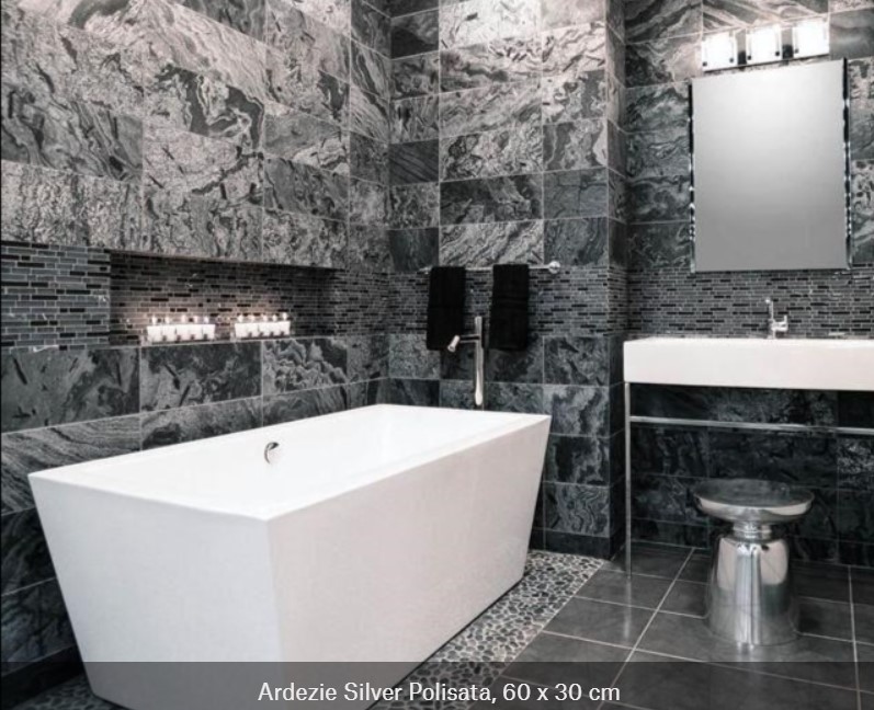 Ardezia iese în evidență datorită texturii sale și conferă băii tale eleganță și rafinament, indiferent de stilul de amenajare pe care îl abordezi. Poate fi utilizată atât pentru placări orizontale, cât și pentru montarea verticală. Mai mult, poate fi transformată într-un blat impresionant pentru chiuvetă.