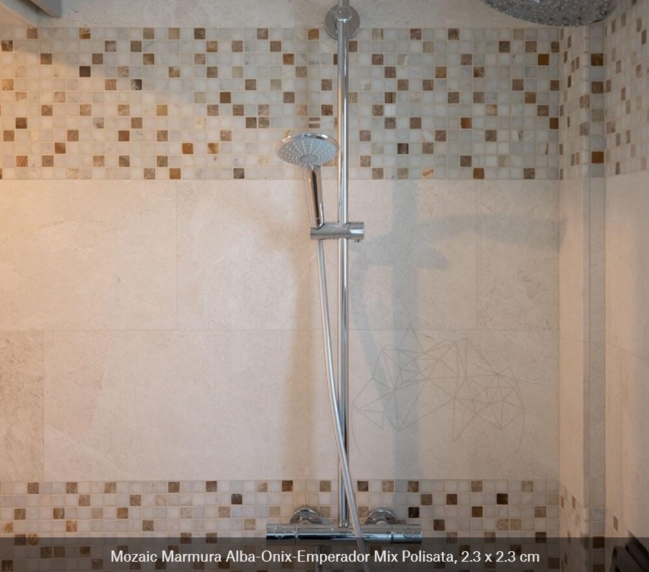 Onixul poate fi utilizat atât pentru pardoseli și pereți, cât și pentru cădițe de duș, chiuvete și alte obiecte sanitare. Bucățile de piatră crem, maro sau aurii pot avea un finisaj natur, polisat sau antichizat, astfel încât să poți alege cel mai bun model pentru stilul de amenajare a băii tale.