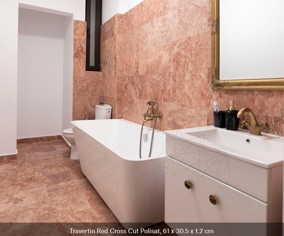 Travertinul se află în topul celor mai folosite tipuri de piatră naturală pentru amenajări interioare, datorită proprietăților sale, aspectului estetic plăcut și prețului avantajos. Astfel, dacă ești în căutarea unei soluții alternative durabile și cu un cost convenabil la placarea cu faianță, acest material este ideal.