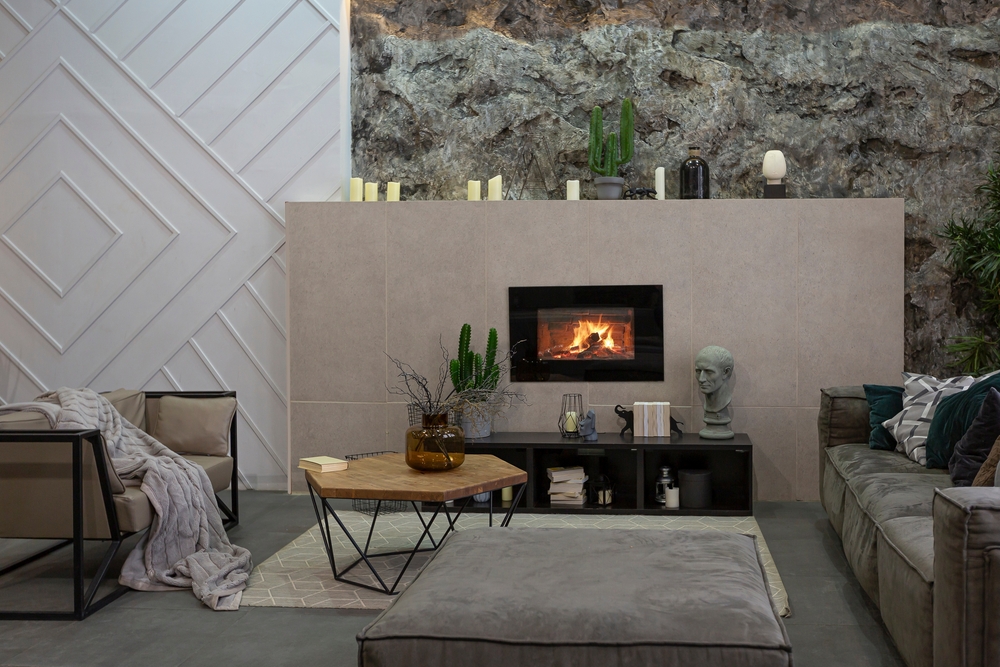 Chiar daca in amenajarea livingului dintr-un apartament mic un semineu nu este primul element decorativ-functional la care te-ai gandi, da-i o sansa! Opteaza pentru unul cu LED, fara caldura, sau pentru unul cu bioetanol. Placheaza apoi peretele din jur cu paneluri de ardezie flexibila, care se monteaza cu amorsa si adeziv special. O alta optiune este sa aplici pe perete foi din marmura flexibila. Acestea au deja adeziv pe spate, iar tu trebuie doar sa dezlipesti folia si sa le lipesti pe perete.