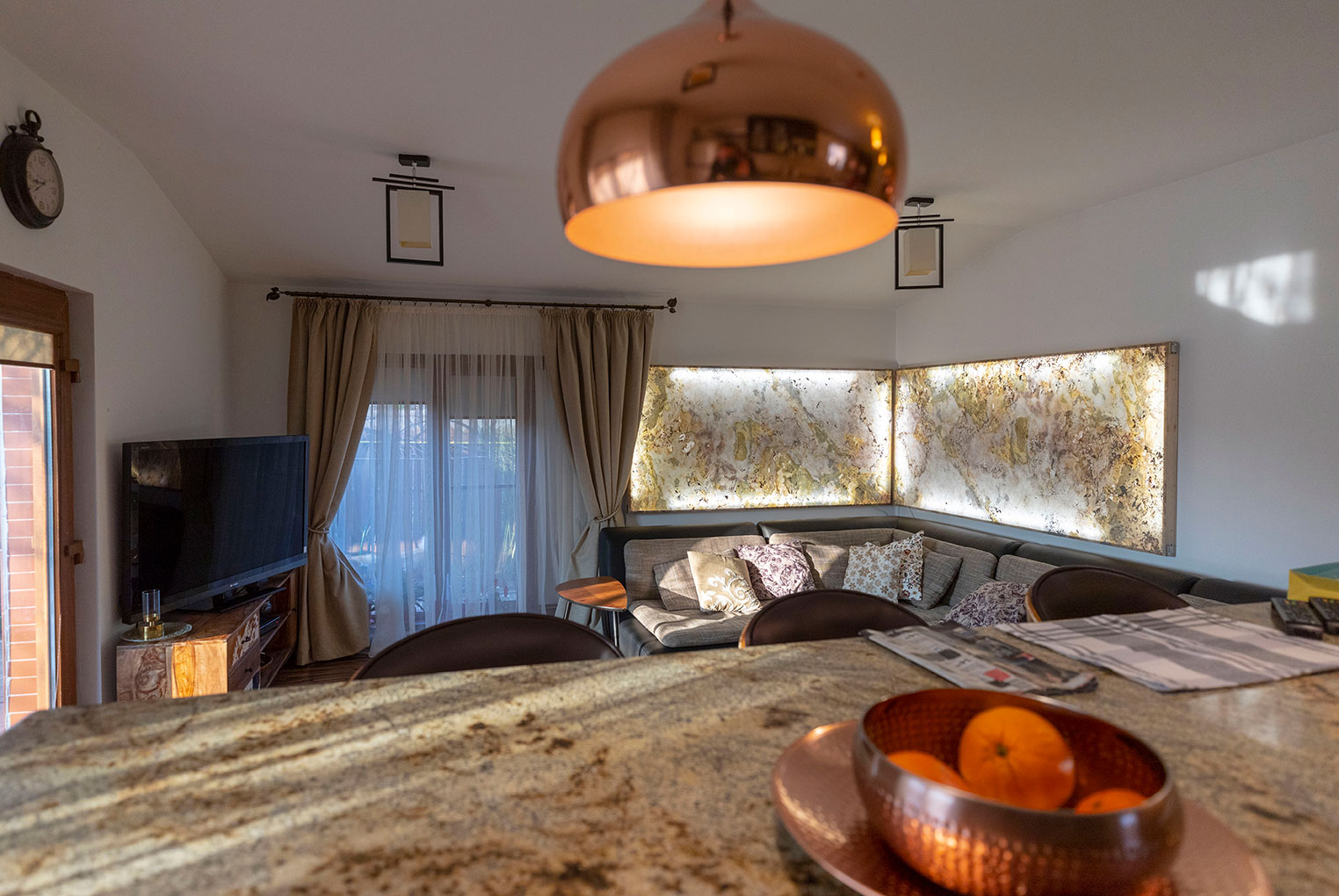 Realizate din  marmura, ardezie flexibila SKIN sau onix placarile cu piatra naturala translucida sunt spectaculoase si generatoare de inspiratie asupra locurilor unde ar putea fi folosite. Piatra naturala transparenta personalizeaza amenajarile de interior si le confera o surprinzatoare si delicata optiune catre lucrarile de arta, aceasta intepretare fiind valabila in special in cazul ardeziei flexibile SKIN care poate fi montata in cele mai felurile proiecte.