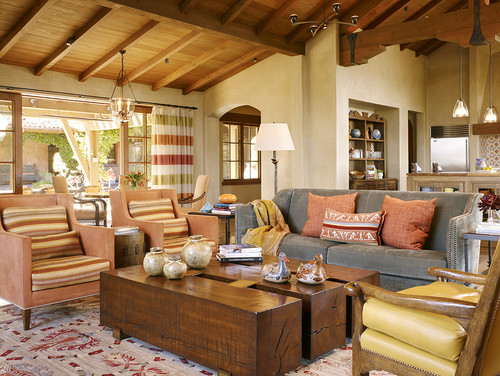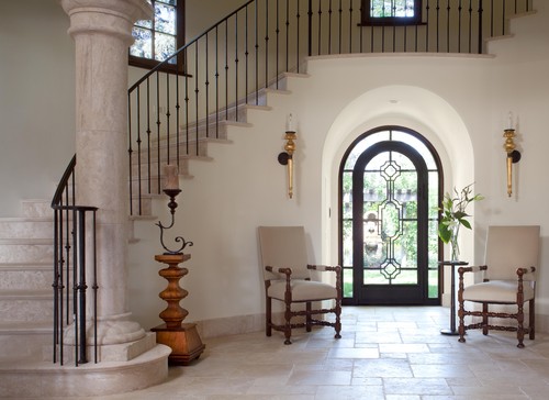 Pentru o amenajare de inspiraţie mediteraneană, se preferă formele curbe, arcuite. Întâlnirea dintre texturile polişate (foarte lucioase) şi cele nefinisate creează acea dinamică naturală ce aparţine acestui tip de atmosferă. Un interior inspirat din zona coastei estice a Europei (Franţa, Italia, Spania) are o energie casual, relaxată şi familiară, folosind materiale şi culori naturale.