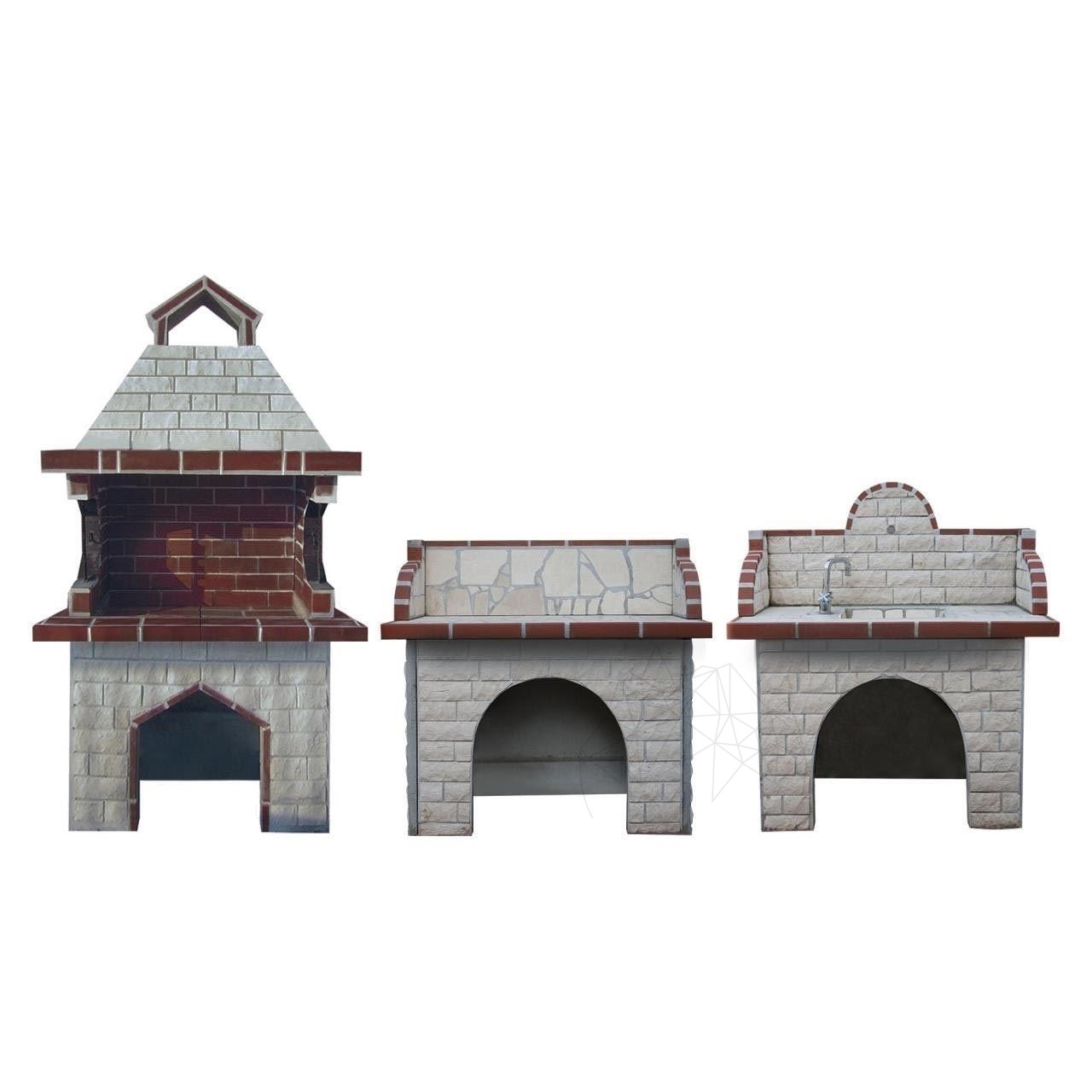 Set Mobilier Gradina Family, Standard (3 piese - Gratar Mediu, Carbune/Lemn, Masa, Lavoar) - piatra decorativa, caramida