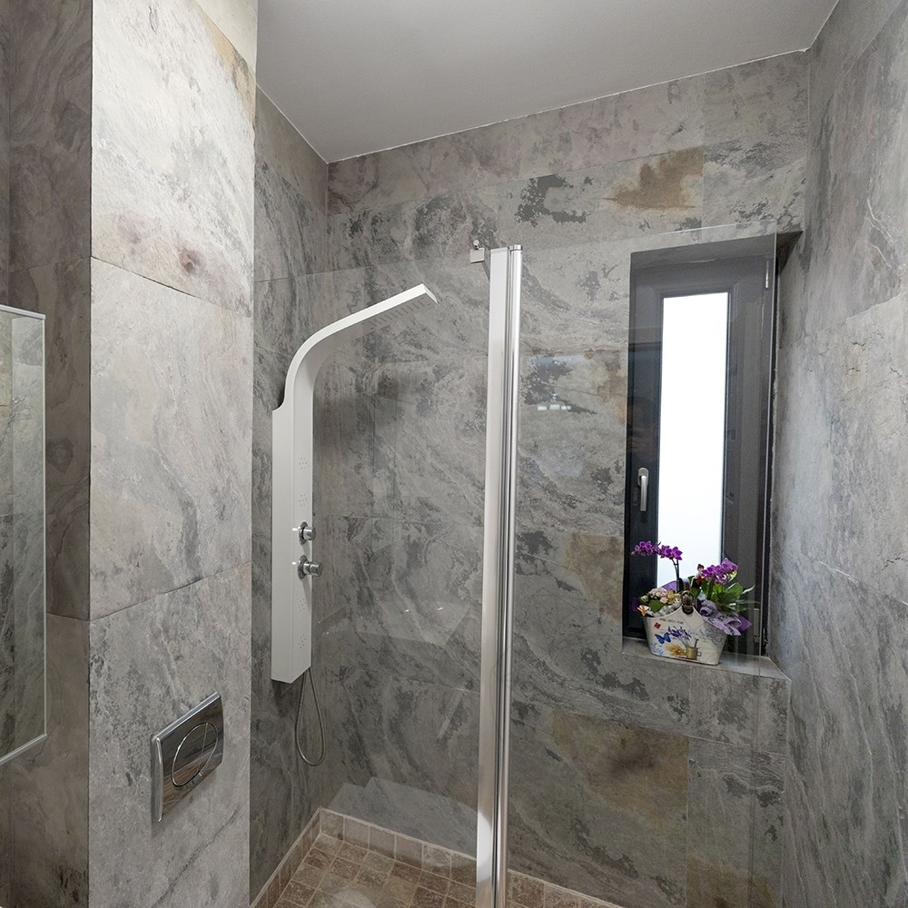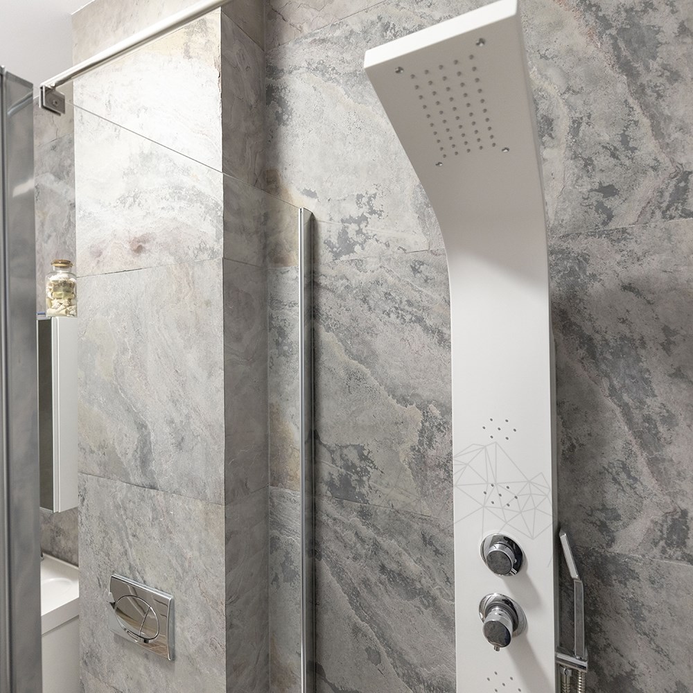 Ardezia flexibila SKIN Autumn White se remarca prin nuanta de gri-alb care ii confera spatiului rafinament si eleganta. Un material natural care se va incadra perfect, indiferent de stilul abordat pentru amenajare – modern, rustic, industrial sau vintage. Textura fina a ardeziei mentine un echilibru intre elementele care compun spatiul, fiind un material versatil prin cromatica sa, care poate fi folosit in combinatie cu alte materiale naturale.