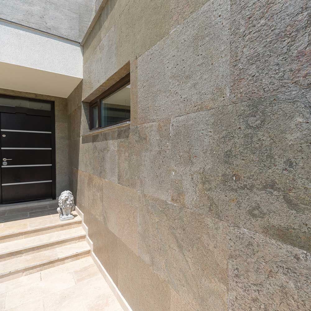 Ardezia flexibila SKIN Golden se remarca prin nuantele aurii si usor metalice care strabat suprafata pietrei. Un material extrem de maleabil care poate transforma orice obiect sau piesa de mobilier prin eleganta sa geometrica. SKIN Golden face ca orice spatiu sa vibreze in lumina culorii sale. Acest produs este obtinut prin intermediul tehnologiei germane, devenind, astfel, o solutie practica pentru cei care isi doresc un spatiu aparte, cu o personalitate puternica.
