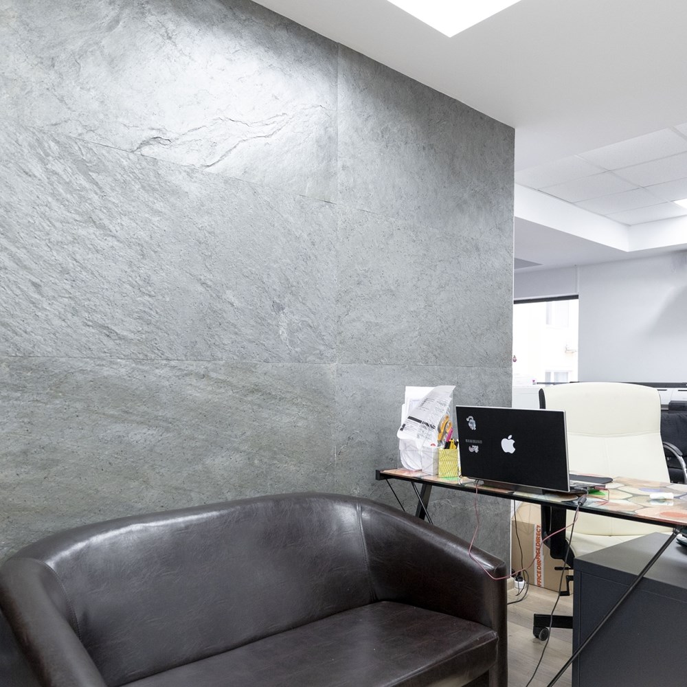 Ardezia flexibila SKIN este un produs revolutionar care elimina orice bariera intre piatra si proprietatea de a fi maleabila. Foloseste-o pentru a imbraca un corp de mobilier, un birou, o masuta de cafea sau un dulap de bucatarie. Aplic-o pe peretii holului de trecere, pe bar, receptive sau chiar pe sezlong. Stiai ca poate fi folosita pe lampa sau pe ghiveciul de flori.