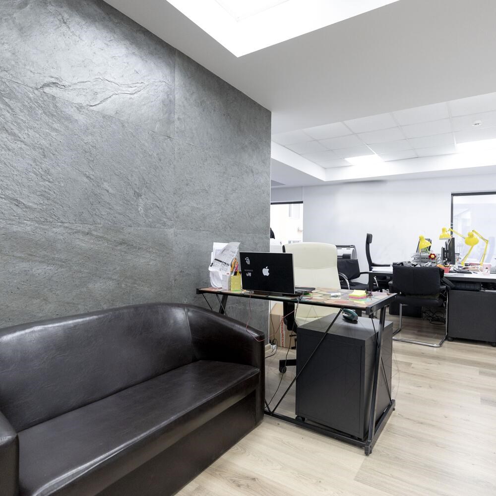Ardezia flexibila SKIN este un produs revolutionar care elimina orice bariera intre piatra si proprietatea de a fi maleabila. Foloseste-o pentru a imbraca un corp de mobilier, un birou, o masuta de cafea sau un dulap de bucatarie. Aplic-o pe peretii holului de trecere, pe bar, receptive sau chiar pe sezlong. Stiai ca poate fi folosita pe lampa sau pe ghiveciul de flori.