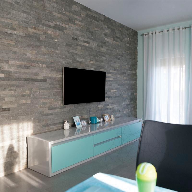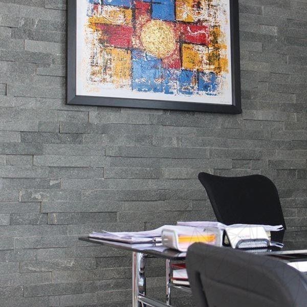 Ardezia este un material natural spectaculos care de-a lungul timpului a infrumusetat gradini si a dat forma celor mai elegante si moderne tipuri de patio. Treptat, frumusetea ei a fost fost adusa catre interior, acoperind pardoseala caselor si continuand cu verticalitatea. Ardezia Kavala este o piatra cu un aspect placut si de-o eleganta subtila care se va potrivi cu orice design abordat. Acest tip de material se foloseste doar pentru placarile verticale atat exterioare, cat si interioare. Lungimea libera a pietrei iti ofera libertatea necesara pentru un plus de creativitate in proiectele tale. Avand o latime de 5 cm si lungimi variabile cu o grosime care se incadreaza intre 0.5 -1.5 cm. Intr-o nuanta de gri-cristal, ardezia Kavala este un material care poate fi combinat cu alte culori si materiale naturale. Nimeni nu va putea contesta simbioza dintre foc si piatra pe care o regasim in eleganta unui semineu imbracat cu ardezie.