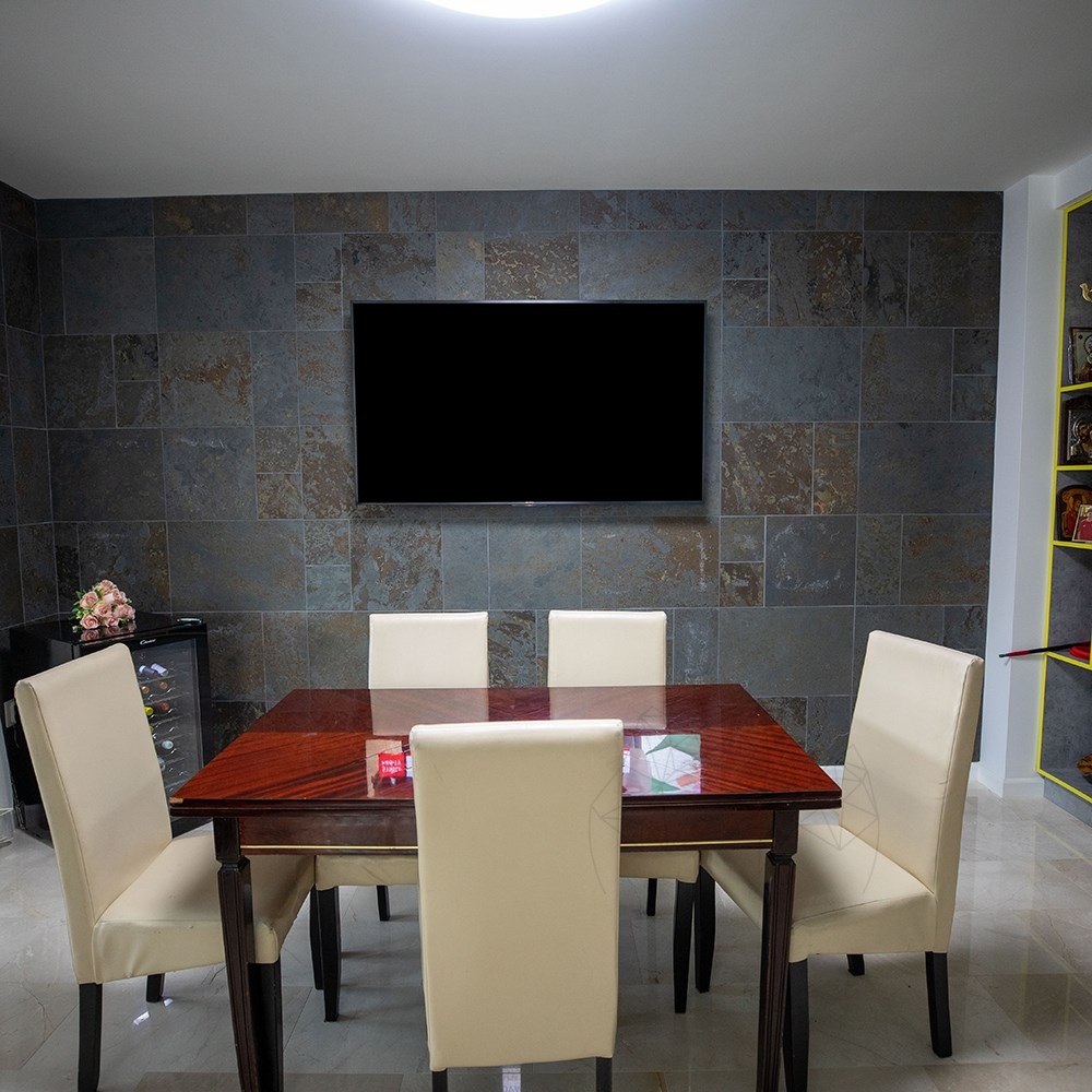 Acest tip de piatra naturala este extrem de rezistenta, fiind o alegere excelenta pentru realizarea de placari pe terasa, fie ca este acoperita sanu ne, poate fi folosita pentru pavajele cu trafic mediu si intens, dar si in spatii umede precum zona din jurul piscinei.