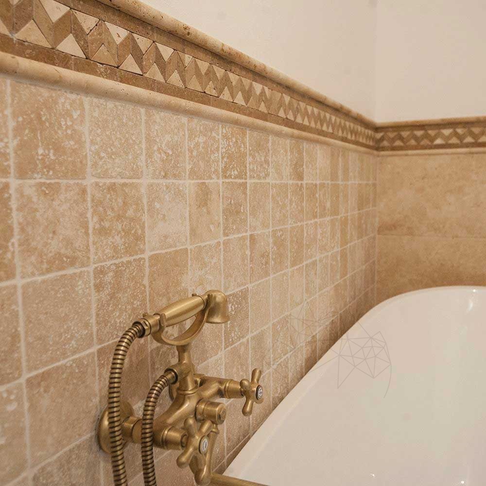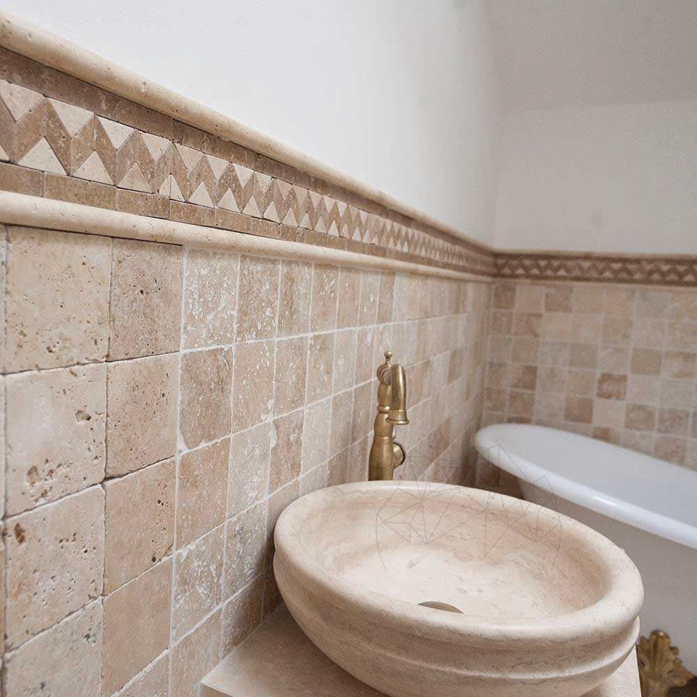 Bagheta M1 travertin Classic se utilizeaza in mod frecvent in compania placarilor cu travertin, dar nu exista nici o problema ca placile sa fie si de alta natura, marmura sau granit, de exemplu.