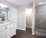 O fantana placata cu piatra mica, in centrul baii, aduce o nota de eleganta orientala si imparte incinta in doua. Blatul din granit (granit) (blaturi) se asterne rustic pe marginea fantanii, fagaduind un suport potrivit si rezistent. Intrarile la dusuri, intr-un echilibru perfect, placate inspirat pe arii curbe si cu dusuri mascate, completeaza imaginea unei bai complete si cu un design special.
