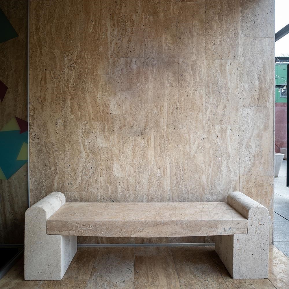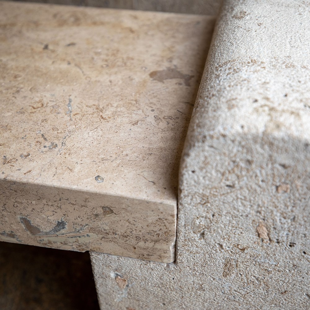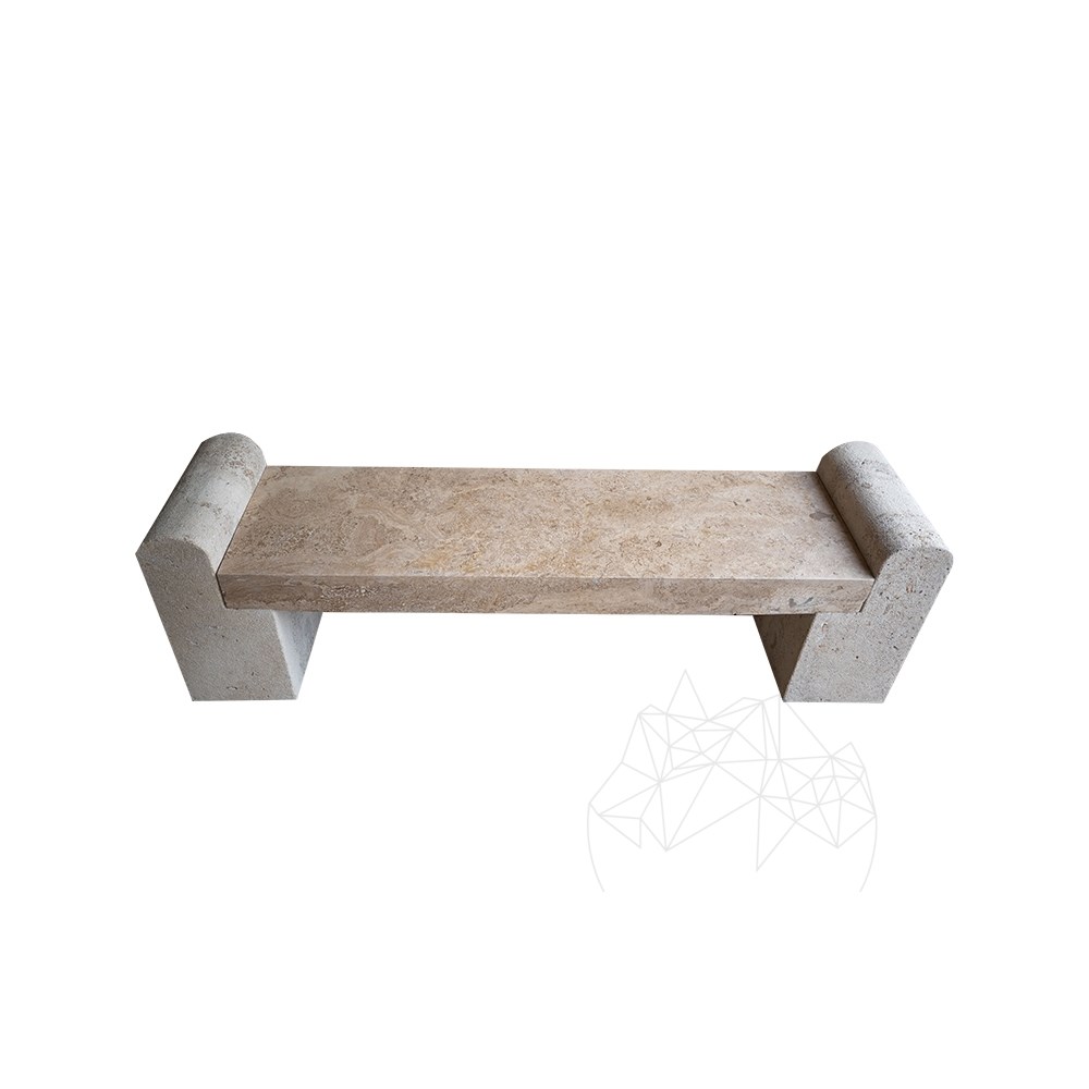 Banca de Grădină Romano din Travertin Latte face parte din colecția Autograph de la PIATRAONLINE, dedicată mobilierului de grădină realizat din piatră naturală.