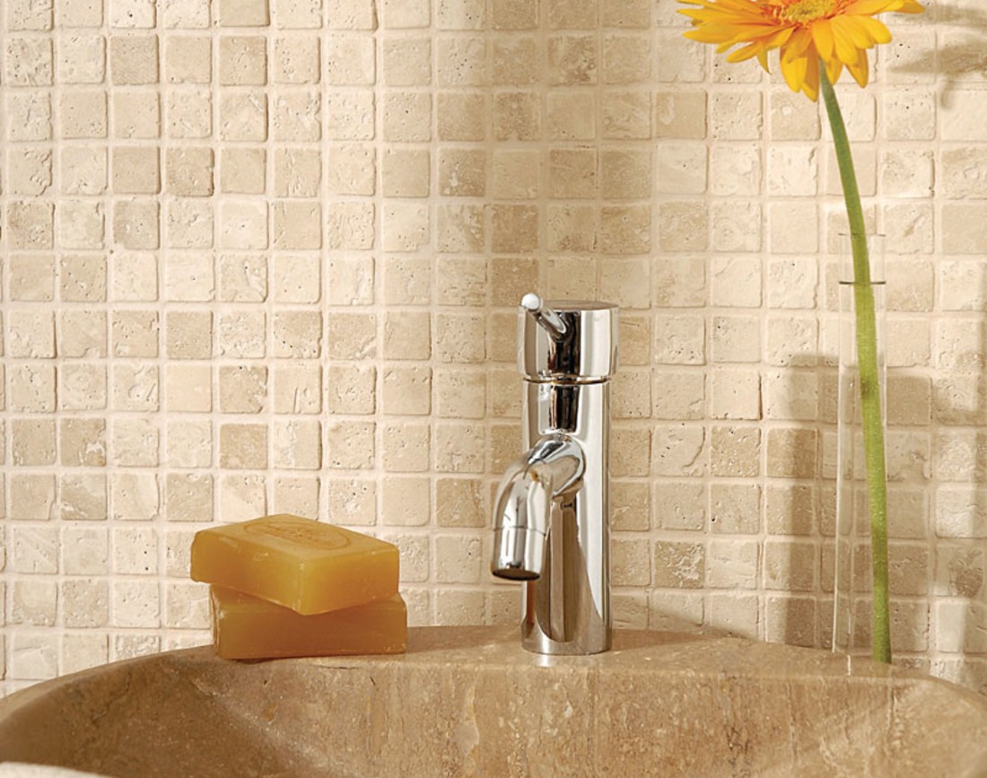 Cu toate ca avem disponibil travertin pentru contrablat de multe culori, finisaje si dimensiuni, mozaicul de travertin este unul dintre cele mai populare. Acesta este foarte usor de instalat, pentru a obtine diferite stiluri de design de la sofisticat la antichizat. Astfel, vei avea un design spectaculos, datorita formelor de travertin patrate de dimensiune redusa (4.8 x 4.8 cm), care atrag de la prima vedere. Gama larga de culori si modele va permit sa identifici o varianta apropiata de culoarea mobilei si a blaturilor din bucatarie.