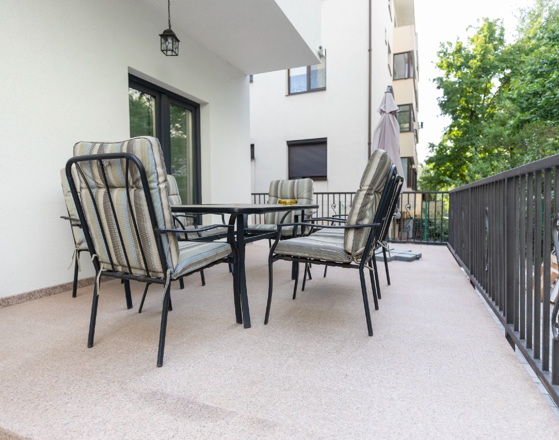 Cand vine vorba de constructia terasei exterioare, trebuie sa te asiguri ca apa de ploaie se poate scurge de pe suprafata acesteia. Foloseste un strat de baza cu o panta de 1,5% si 2,5%. In cazul in care nu faci placarea exterioara in acest fel, fie ca vorbim despre o terasa acoperita sau neacoperita, apa va balti si se va infiltra in pardoseala, dar si in rezistenta casei.