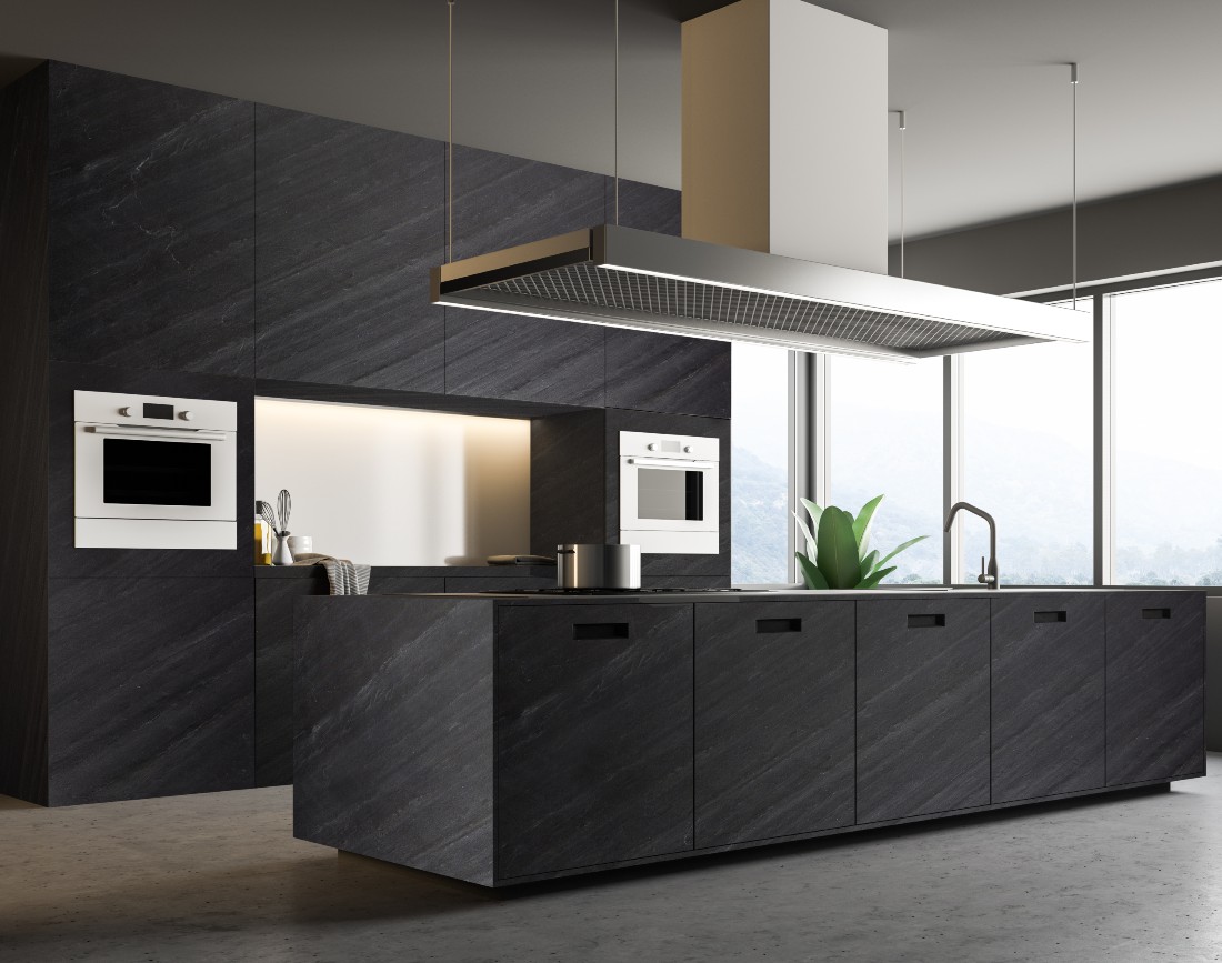 Mobilier de bucatarie amenajat cu ardezie flexibila, sursa foto: PIATRAONLINE