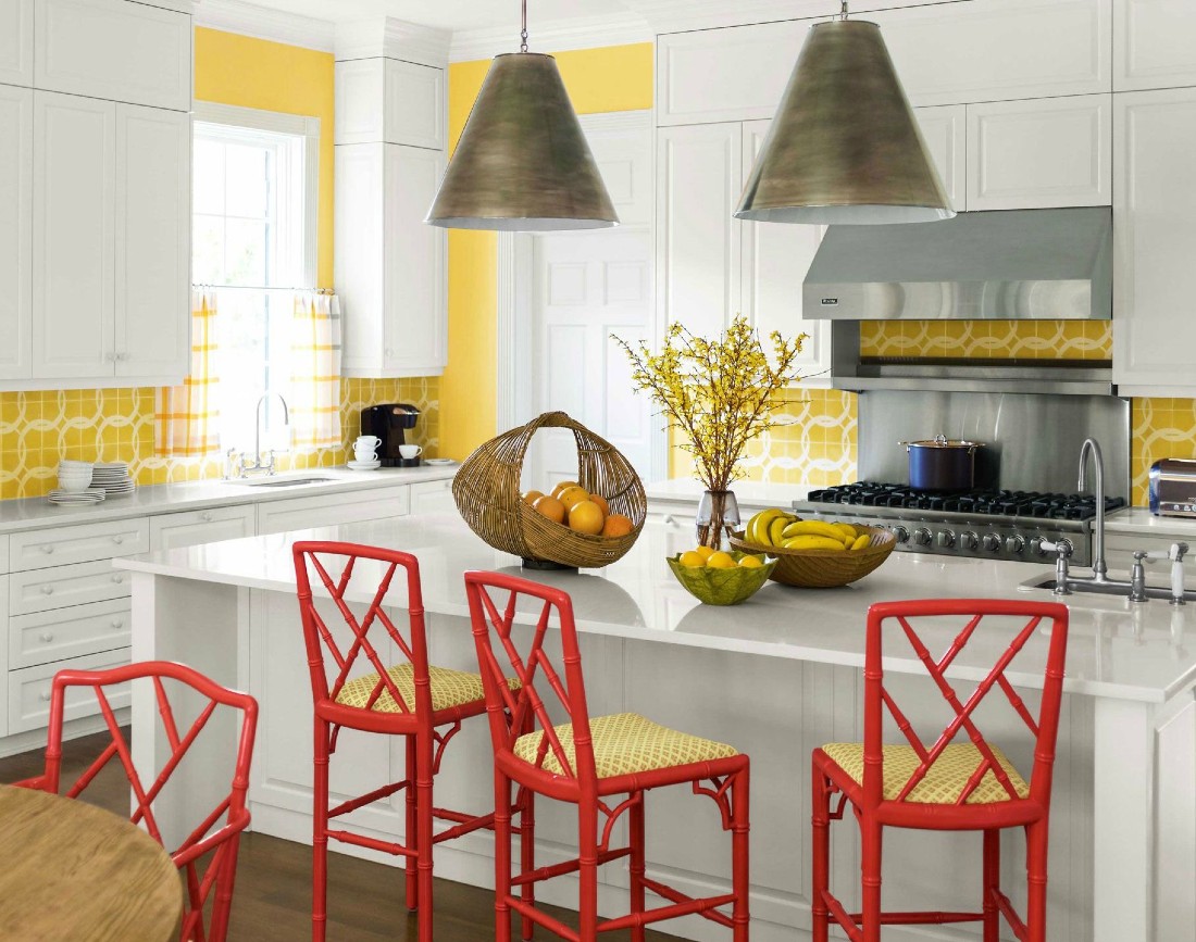 In amenajarea bucatariei, poti inlocui vechile scaune cu unele galbene si gri pentru un plus de veselie si optimism.