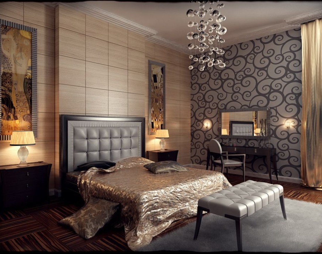 In amenajarea unui dormitor in stil art deco, poti folosi pereti vopsiti intr-o nuanta neutra, monocromatica sau tapet cu diferite modele de diamante, dungi sau forme geometrice. Opteaza pentru benzi decorative volumetrice cu care sa decorezi peretii, semineul sau arcurile.