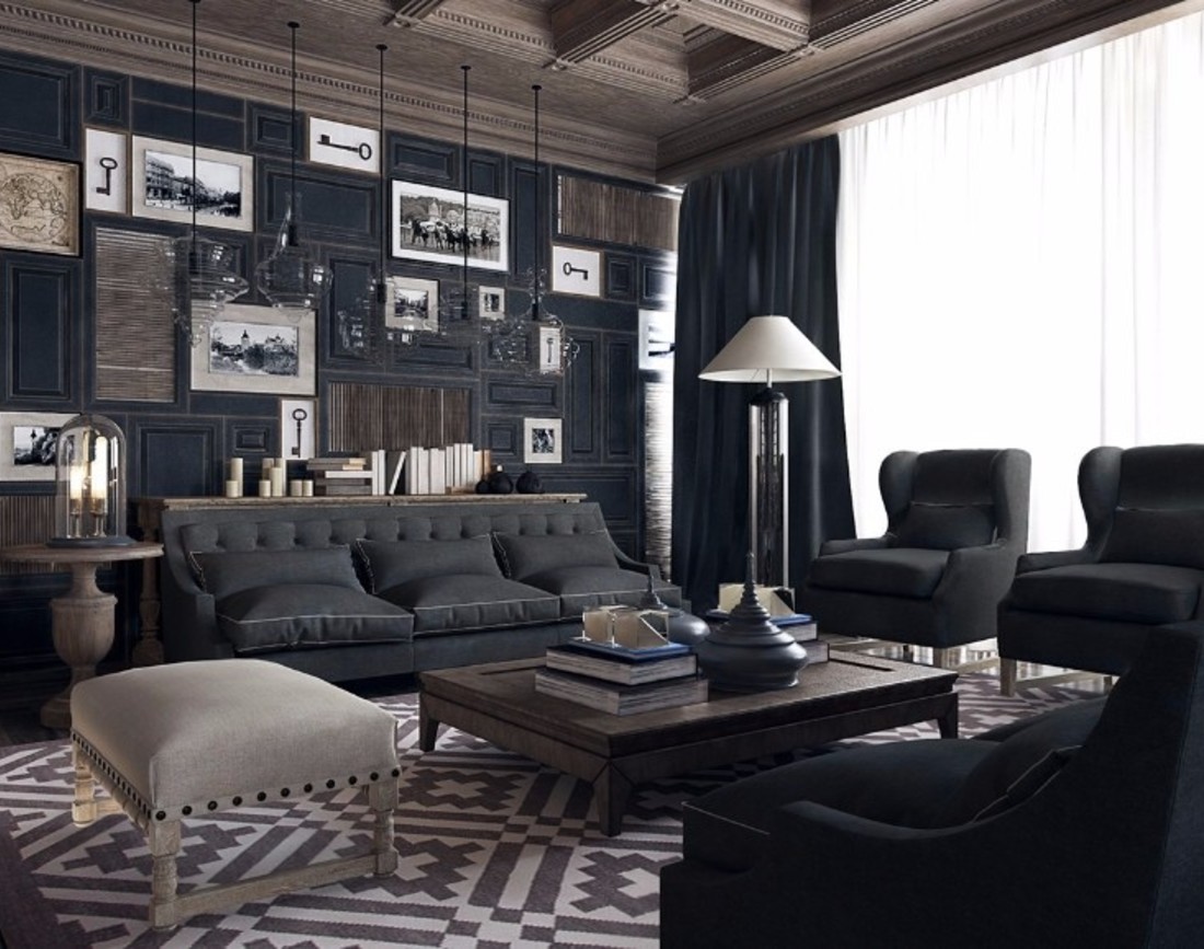 Idee de amenajare a livingului in stil art deco in nuante inchise, sursa foto: Livingroom Ideas