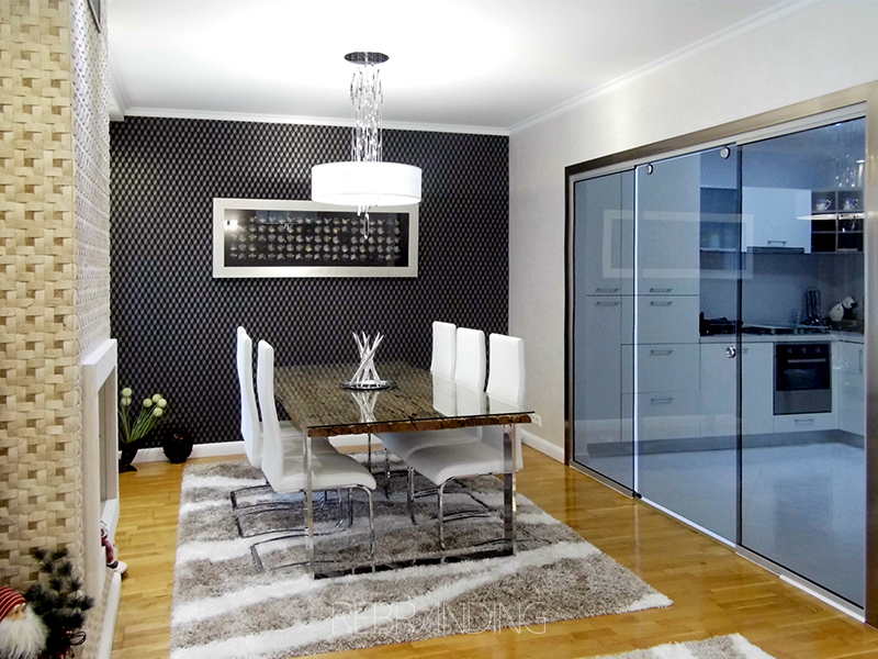 Proiectul Ibiza Sol despre care l-am rugat pe designer sa ne vorbeasca este unul mai vechi, un apartament cu trei camere localizat in partea de nord a Bucurestiului. Apartamentul beneficiaza de curte proprie, cu deschidere spre gradina complexului. Brief-ul beneficiarilor a conturat cateva idei clare: si-au dorit o locuinta cu spatii deschise, cu mobilier putin in zona de zi, astfel incat accentul sa cada pe suprafata vitrata catre gradina exterioara. ”Spatiile de depozitare pentru zona de zi sunt ascunse pe cat posibil. Atat dressingul, cat si debaraua sunt concepute sub forma de nise in perete, inchise cu usi glisante din sticla cu fotoprint cu tematica naturala. In acelasi stil au fost amenajate si restul incaperilor”, ne spune Alexandru Serban, designer de interior.