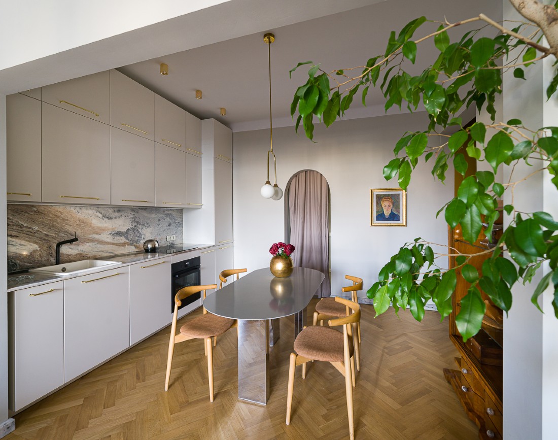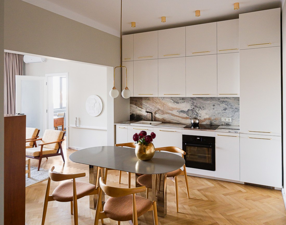 Bucataria si zona de dining din apartament, foto de: Catalin Georgescu, sursa foto: Annterior Studio