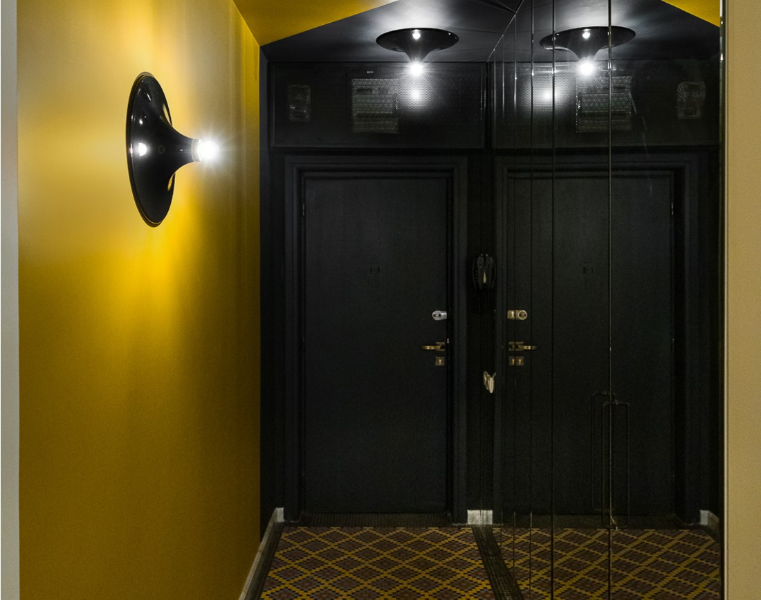 Ca in orice proiect ce implica un spatiu cu istorie, prima noastra grija este recuperarea ei. Pentru ca nimic nu se compara, in atmosfera finala, cu parfumul, sarmul si onestitatea pe care le imprima povestea unui loc. Grafismul mozaicului de la intrare a fost punctul de plecare pentru diagonalele ocru-negru din hol. Am restaurat parchetul de stejar care, sub stratul de oboseala si neglijenta, s-a dovedit a fi impecabil in tot apartamentul si toate usile solide si mari de lemn, inclusiv cea de intrare in casa.