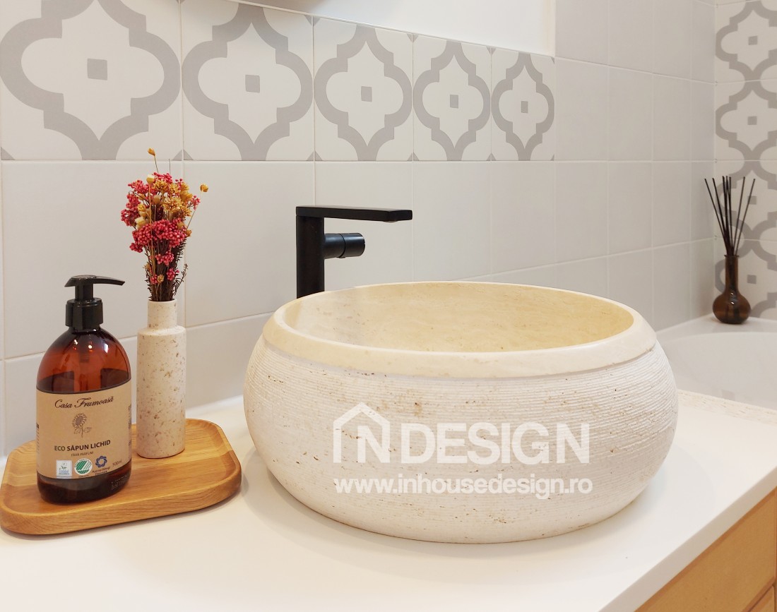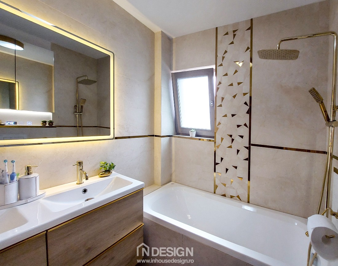 Amenajarea baii de la etaj din proiectul Bragadiru, sursa foto: In House Design