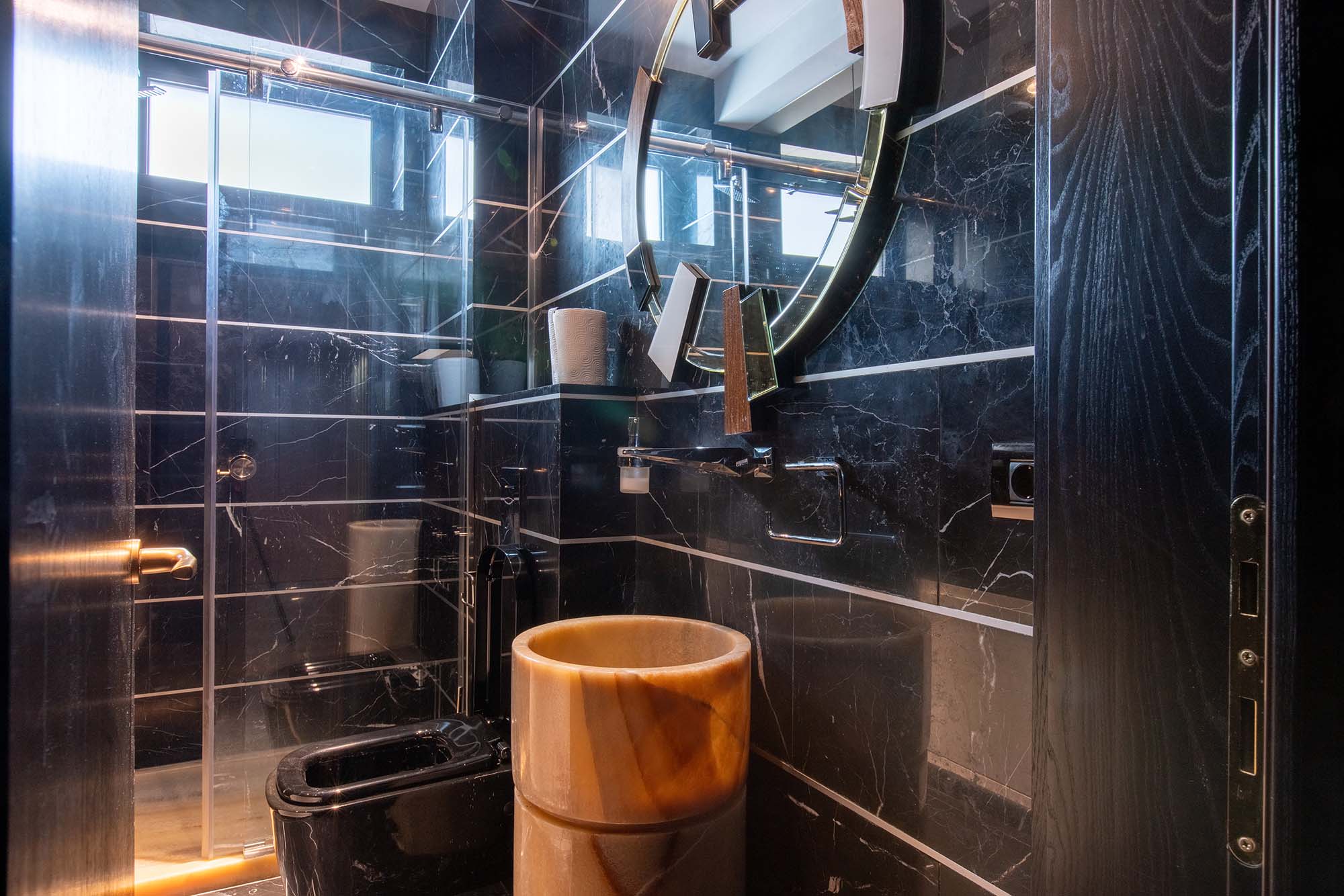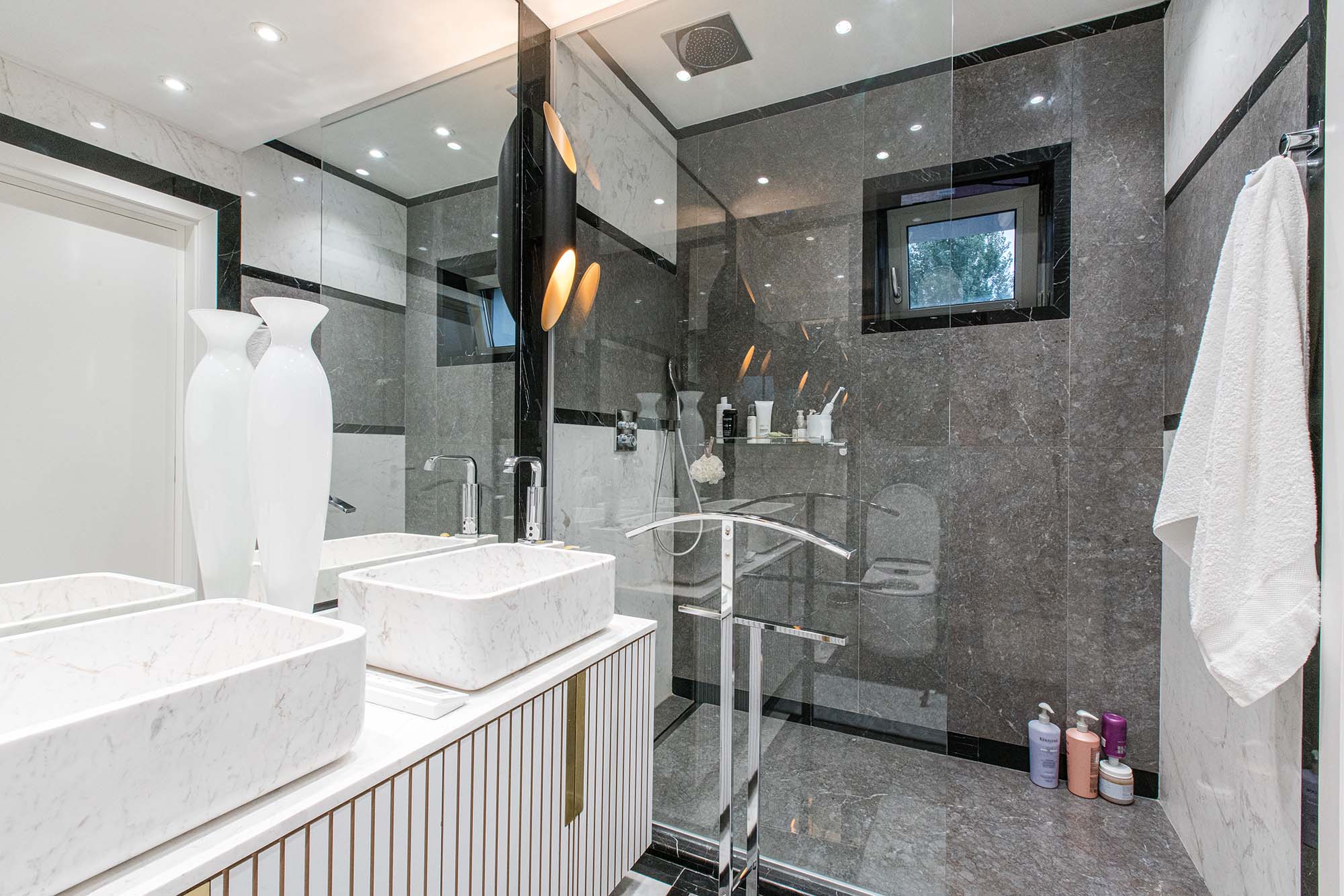 Detalii și finisaje excepționale: Marmura poate fi utilizată în diverse moduri în băile de lux, pentru a adăuga detalii și finisaje excepționale. Chiuvetele și lavoarele din marmură, oglinzile cu rame din marmură sau chiar placajele de marmură pe pereți adaugă un farmec aparte și o notă distinctivă băii. Aceste elemente personalizate și sofisticate completează designul general al băii, conferindu-i un aspect exclusivist. Fiecare detaliu din marmură poate fi atent ales pentru a completa designul și pentru a crea o atmosferă de lux și rafinament.