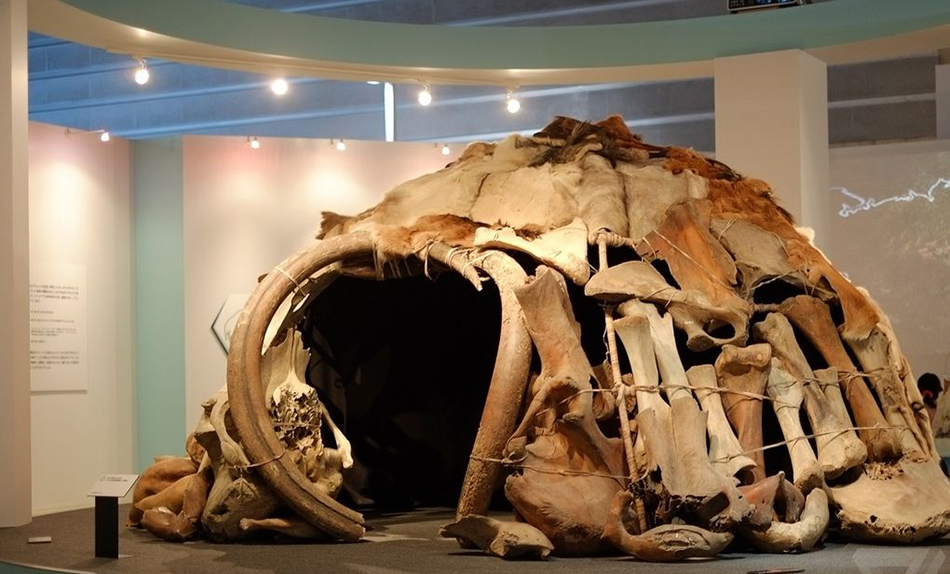 Aceste colibe, vechi de circa 25000 de ani au aparut in Ucraina, Moravia, Cehia, Polonia. Construite integral din oase de mamut acestea probeaza nu doar imaginatia stramosilor ci si modul de viata colectiv, altfel este greu de inteles cum “homo sapiens” de atunci a putut manevra oasele grele de cateva sute de kg fiecare. Ar mai fi de aflat si cum au rezistat oasele aproape 30000 de ani cand o amenajare de gradina actuala (exceptie cea din piatra naturala) abia prinde cateva zeci.