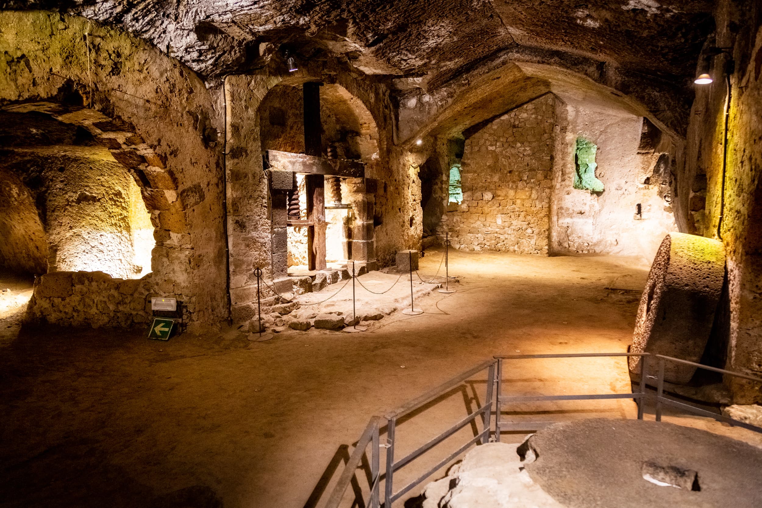 Situat în Umbria și având, de secole, o recunoaștere unanimă a calității vinurilor sale albe, Orvieto nu apare ca având ceva special. Totuși, în solul de cenușă vulcanică al așezării, atât de prielnic culturii vitei de vie, se afla săpate peste 1200 de tuneluri, începute încă de pe vremea etruscilor. Incintele subterane, folosite ca lăcașuri de cult, sau, mai pragmatic, ca depozite de vinuri sau pentru cuibărirea porumbeilor, sunt legate între ele prin galerii pentru deplasare, acestea au fost utilizate și ca ascunzători în timpul conflictelor, în acest sens s-au găsit dovezi că anumite zone au slujit ca refugiu în timpul celui de-al doilea război mondial.