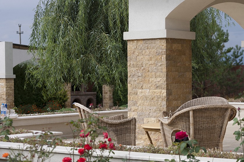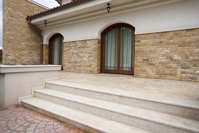 Piatra naturală în exterior: Una dintre cele mai evidente utilizări ale pietrei naturale în stilul mediteranean este reprezentată de fațadele clădirilor. Suprafețele exterioare sunt adesea acoperite cu piatră naturală, cum ar fi travertinul, marmura sau piatra calcaroasă, care oferă un aspect rustic și autentic. Aceste materiale nu doar îmbunătățesc estetica clădirilor, ci și le conferă rezistență și durabilitate în fața condițiilor meteorologice variate din regiunea mediteraneană.