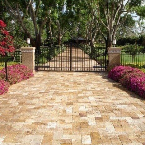 De asemenea, piatra naturală este folosită pentru pavarea aleilor și a teraselor. Plăcile de piatră în culori calde, cum ar fi ocru, crem sau maro, creează o atmosferă primitoare și îmbină perfect cu vegetația luxuriantă și cu mediul natural specific regiunii mediteraneene.