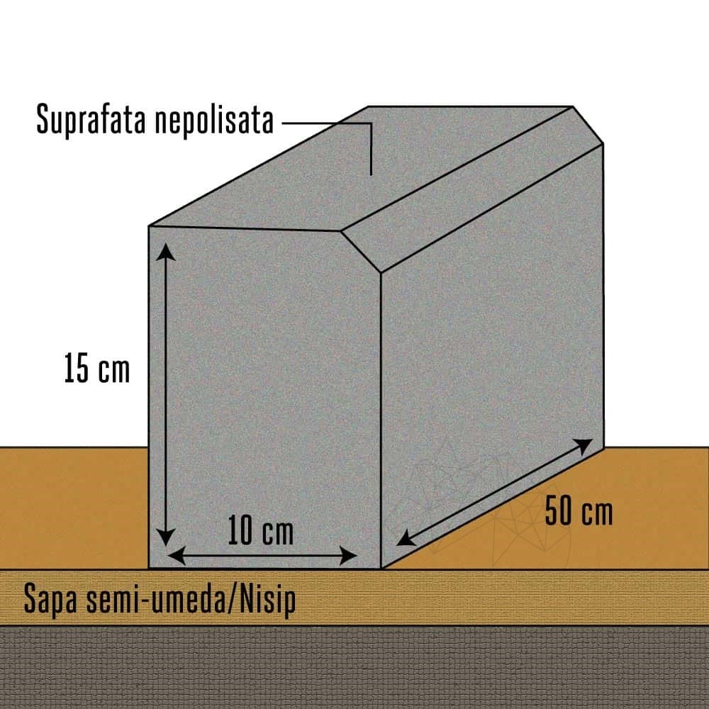 Ex: pentru delimitarea unei alei de 15 m (1500 cm) lungime sunt necesare 1500 : 50 = 30 borduri Bianco Sardo 10x15x50 cm.