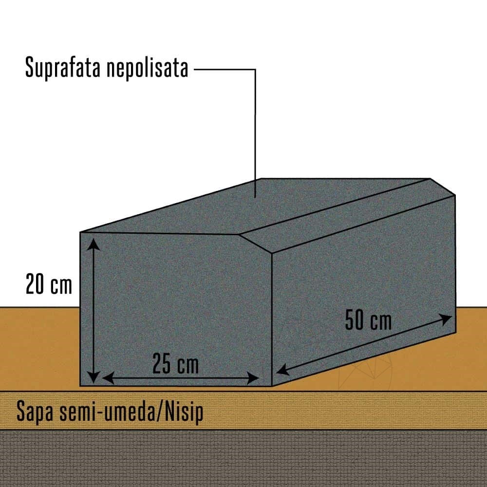 Bordurile stradale din granit gri antracit se executa la urmatoarele dimensiuni standard (l x I x L): 10 x 15 x 50 cm si 25 x 20 x 50 cm