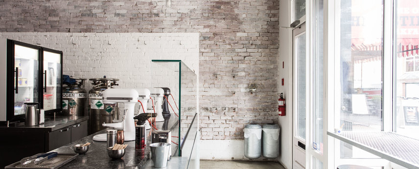Peretii de caramida varuita si suprafetele de otel galvanizat au prins viata intr-un depozit vechi din Vancouver pentru a se transforma intr-o gelaterie artizanala. Mister este situat in cartierul Yaletown, in interiorul unui spatiu ce odinioara era docul de incarcare al unui depozit construit in 1912. Echipa de design Scott & Scott Architects a decis sa pastreze din istoria cladirii, si anume peretii de caramida, in timp ce utilizeaza materiale potrivite unui loc ce face inghetata artizanala cu ajutorul azotului lichid. Insula de lucru a fost facuta din foi de otel si galvanizate pentru a-i conferi protectie impotriva coroziunii. Otelul a fost ales tocmai pentru a sublinia ideea de rece.