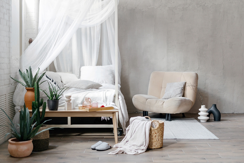 Poți introduce și accente de culoare, însă culorile predominante trebuie să rămână neutre. Ca accent, poți folosi tonuri pastelate sau culori inspirate din natură care vor aduce un strop de personalitate și vitalitate.