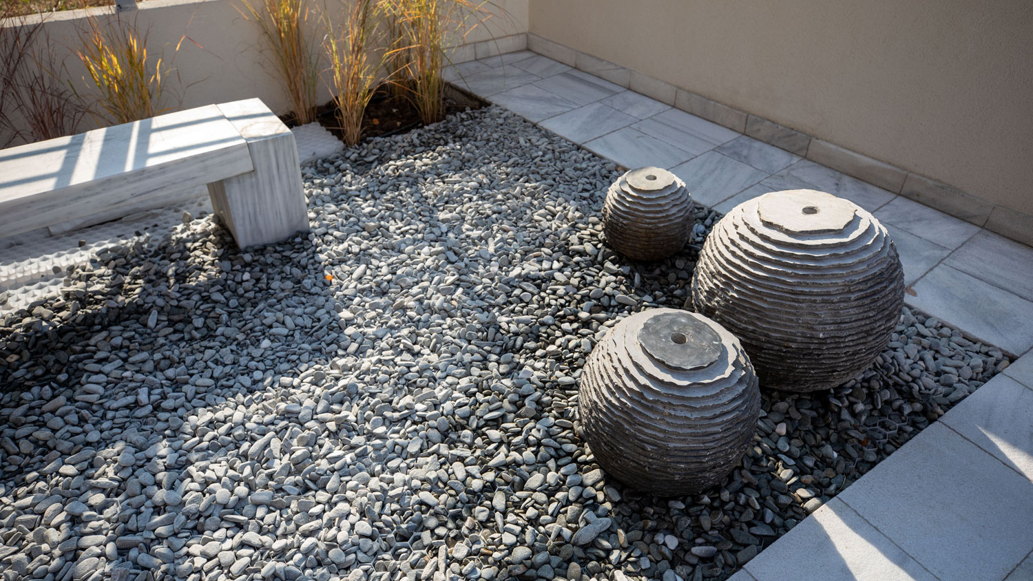 Fatada poate fi bogat ornamentata si placata cu piatra naturala, insa atentia la detalii nu se opreste doar asupra casei. Amenajarea gradinii este la fel de importanta. Aleile pietruite sunt inconjurate de arbusti, copaci si gazon - toate mentinute intr-o forma perfecta. In acelasi timp, treptele sau scara exterioara ar trebui sa fie dintr-o marmura de foarte buna calitate. In fata locuintei poti avea o fantana arteziana sau una pentru pasari, cu o statuie eleganta in centru. Daca preferi un decor mai simplu, iti recomandam bilele decorative din antracit si jardiniere din travertin.