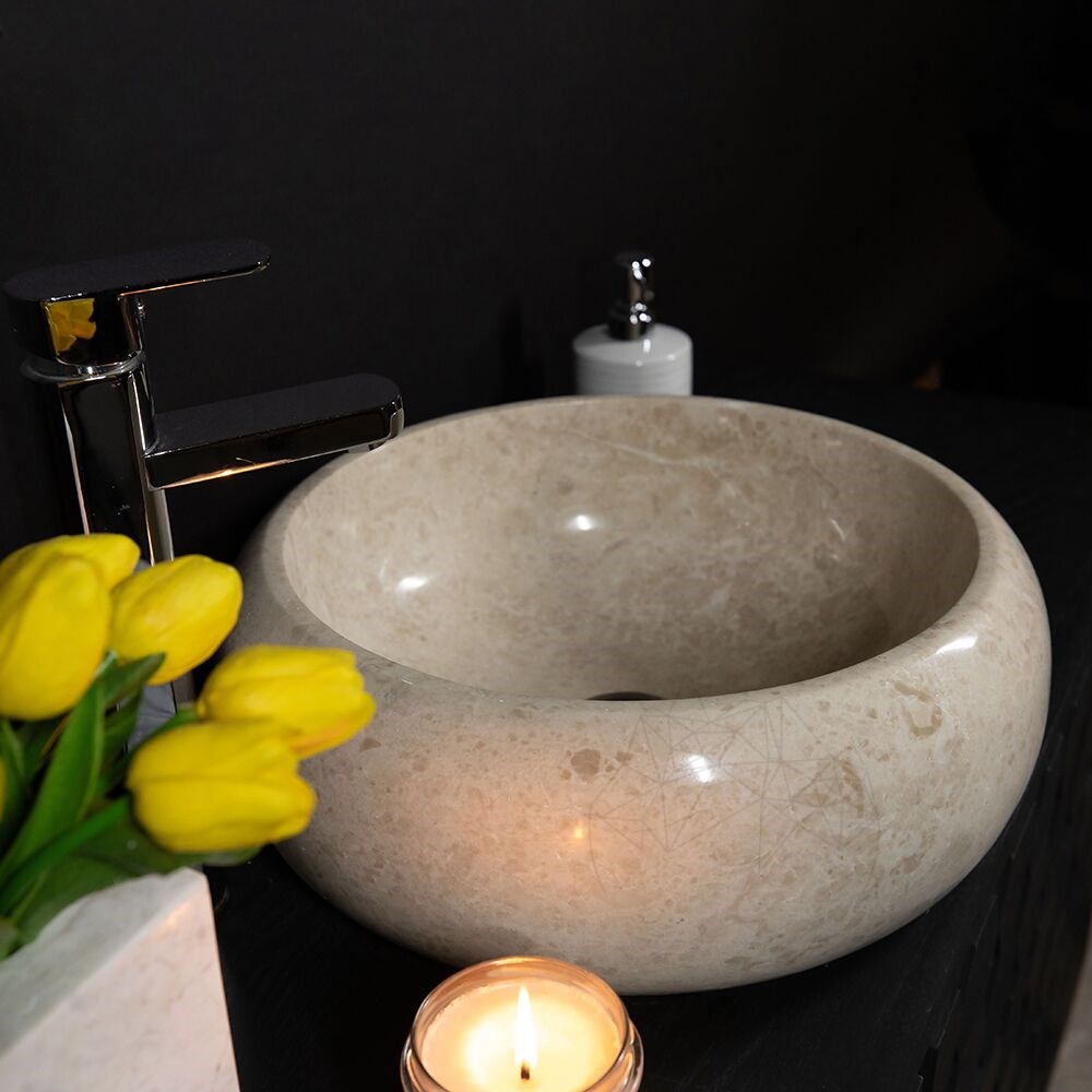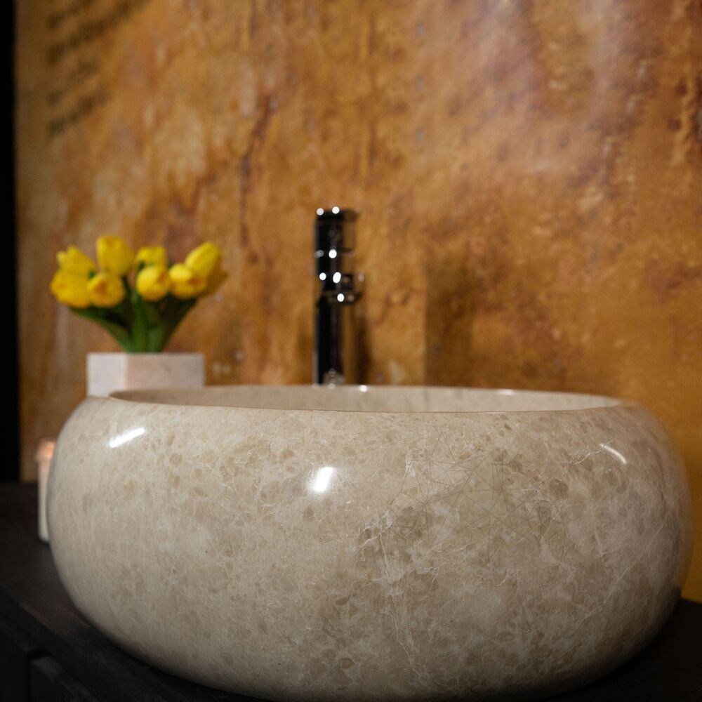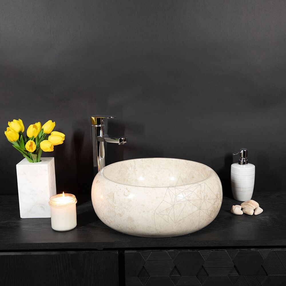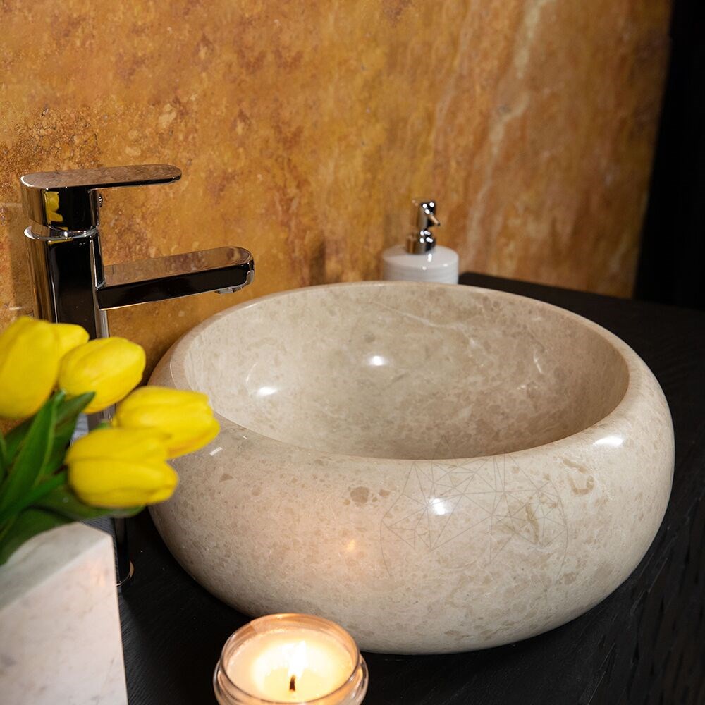 Asociați lavoarul cu alte elemente de design din piatră naturală sau lemn pentru a completa și a accentua aspectul rafinat al băii dumneavoastră.