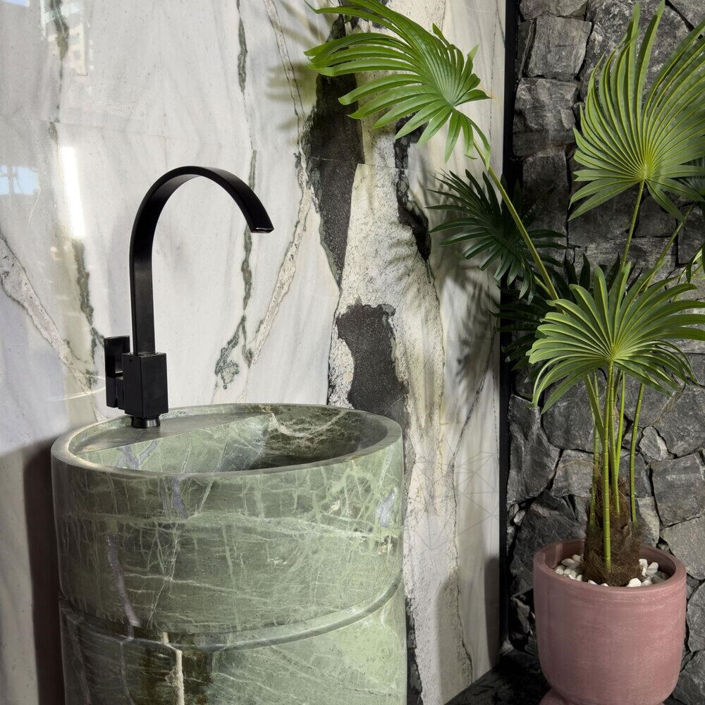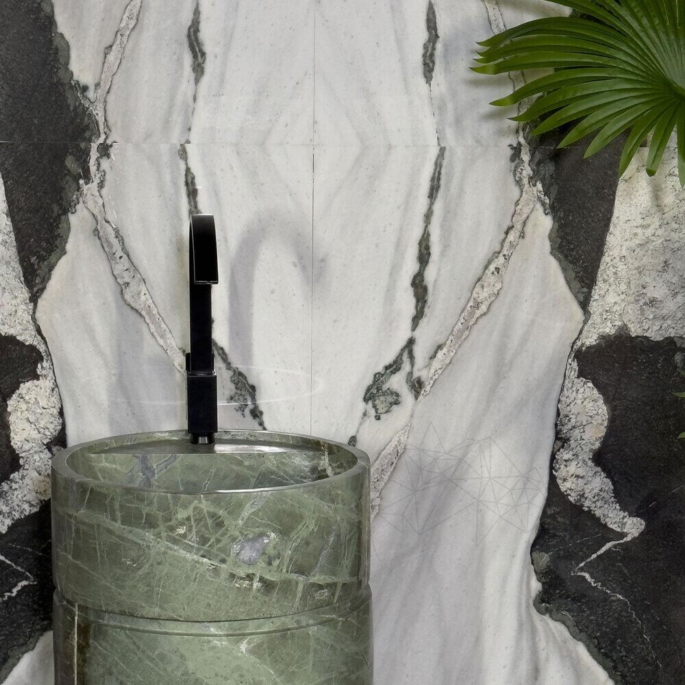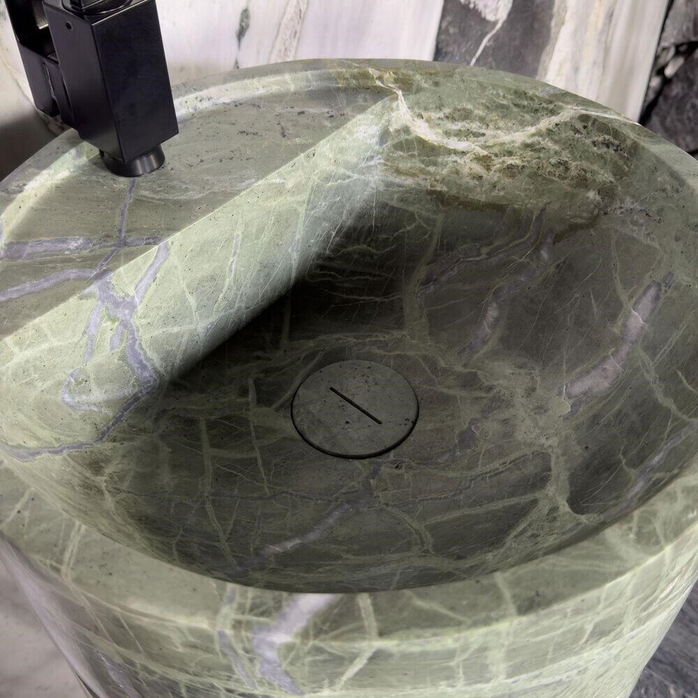 Termenul „Emerald” evocă nuanța verde bogată a marmurei, adăugând un sentiment de raritate și lux, în timp ce „Teos” îl conectează la tipul specific de marmură. Acest nume reflectă eleganța și exclusivitatea chiuvetei, perfectă pentru ofertele high-end ale PIATRAONLINE
