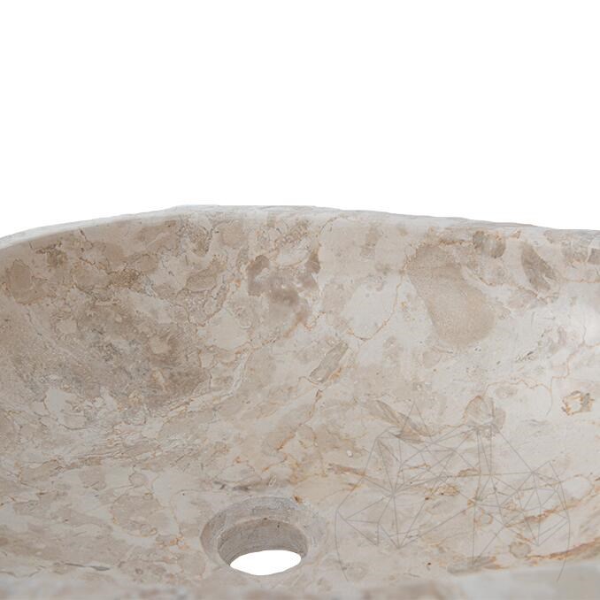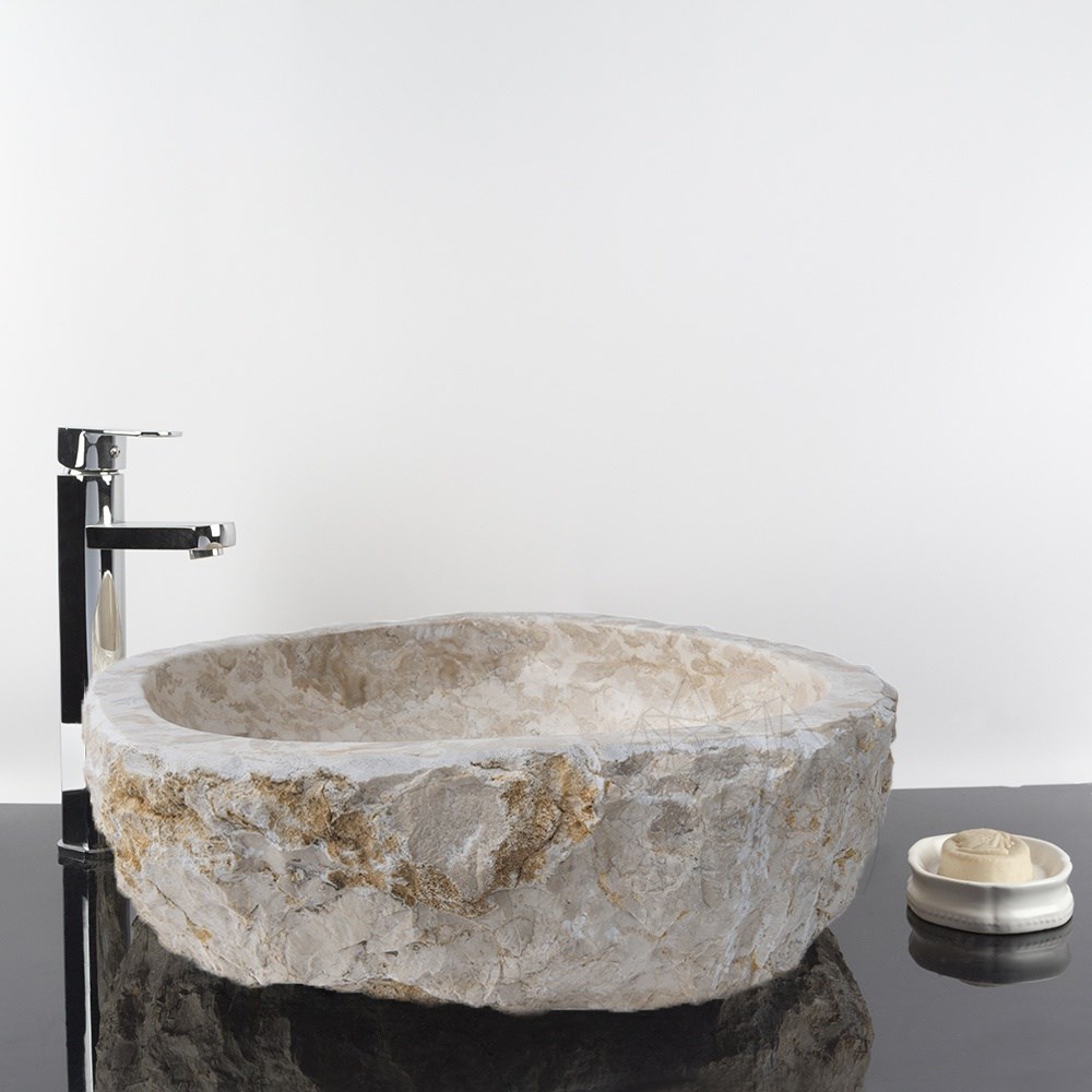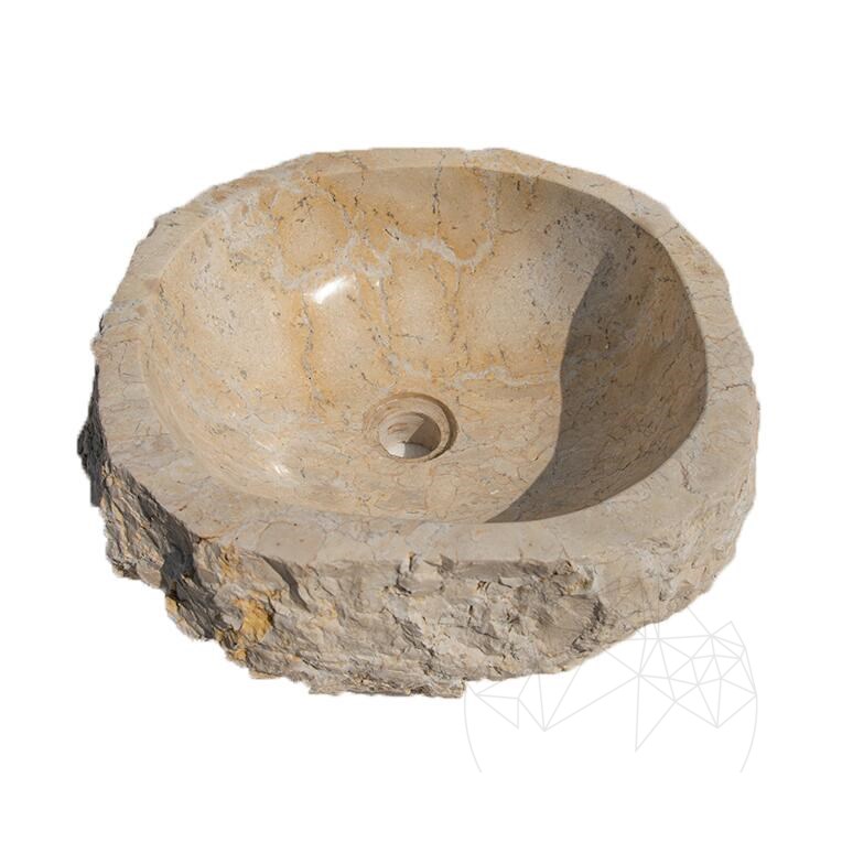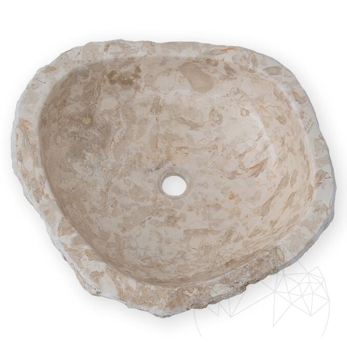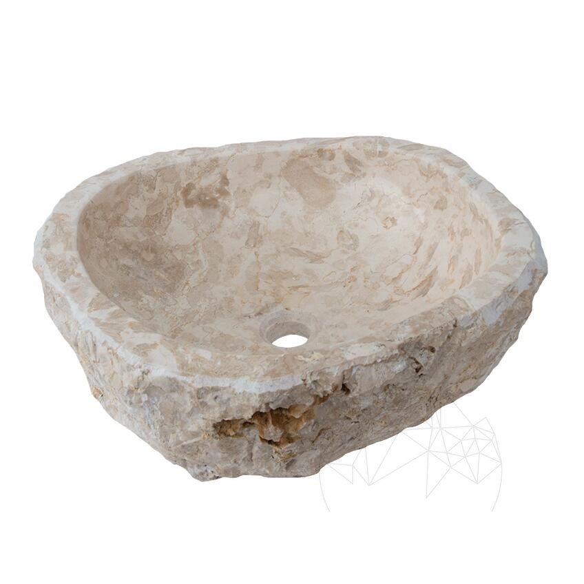 Textura sa unica si culorile variate aduc o nota de autenticitate si rafinament in orice baie. Fiecare chiuveta Matia Limestone Crem Natura este o opera de arta in sine, avand o forma organica si neregulata, specifica pietrei fosilizate. Culorile dominante, de la nuante de maro inchis la bej si gri, creeaza un spectacol vizual fascinant.