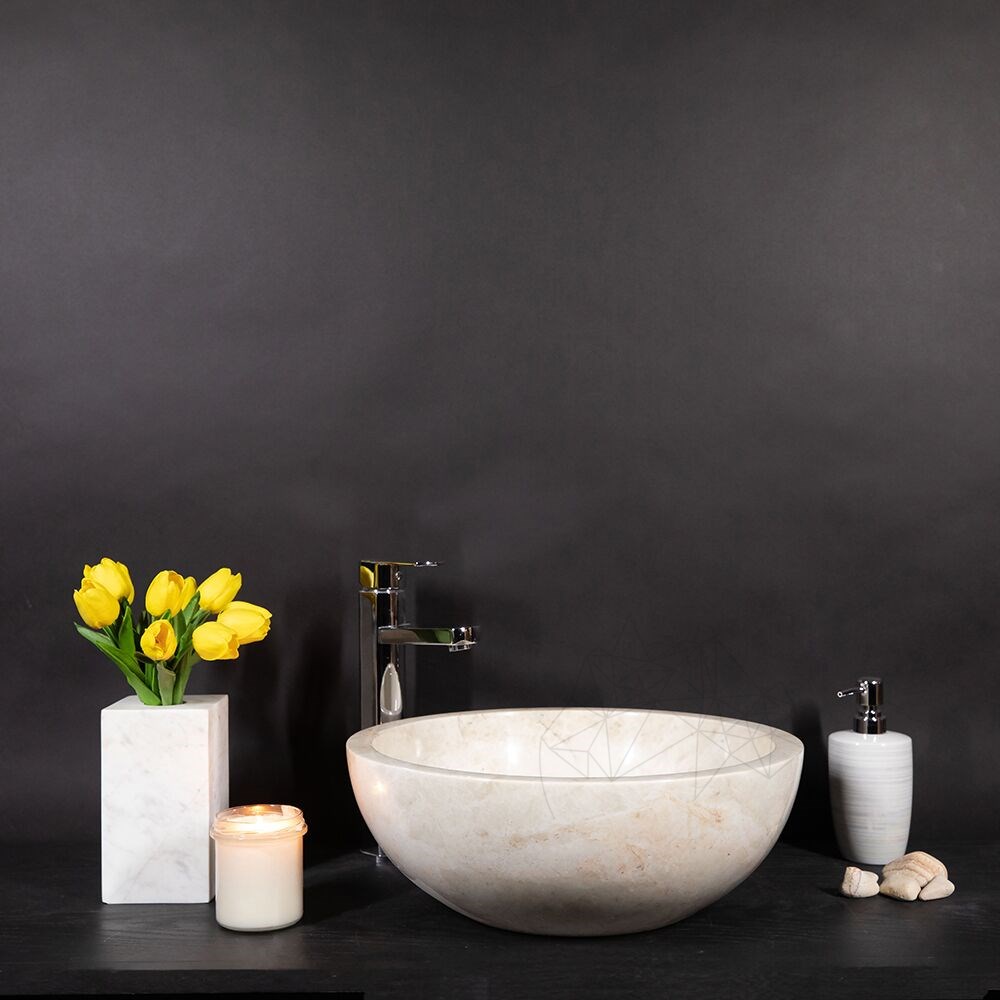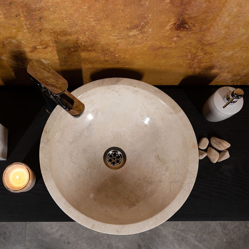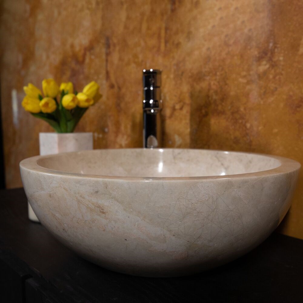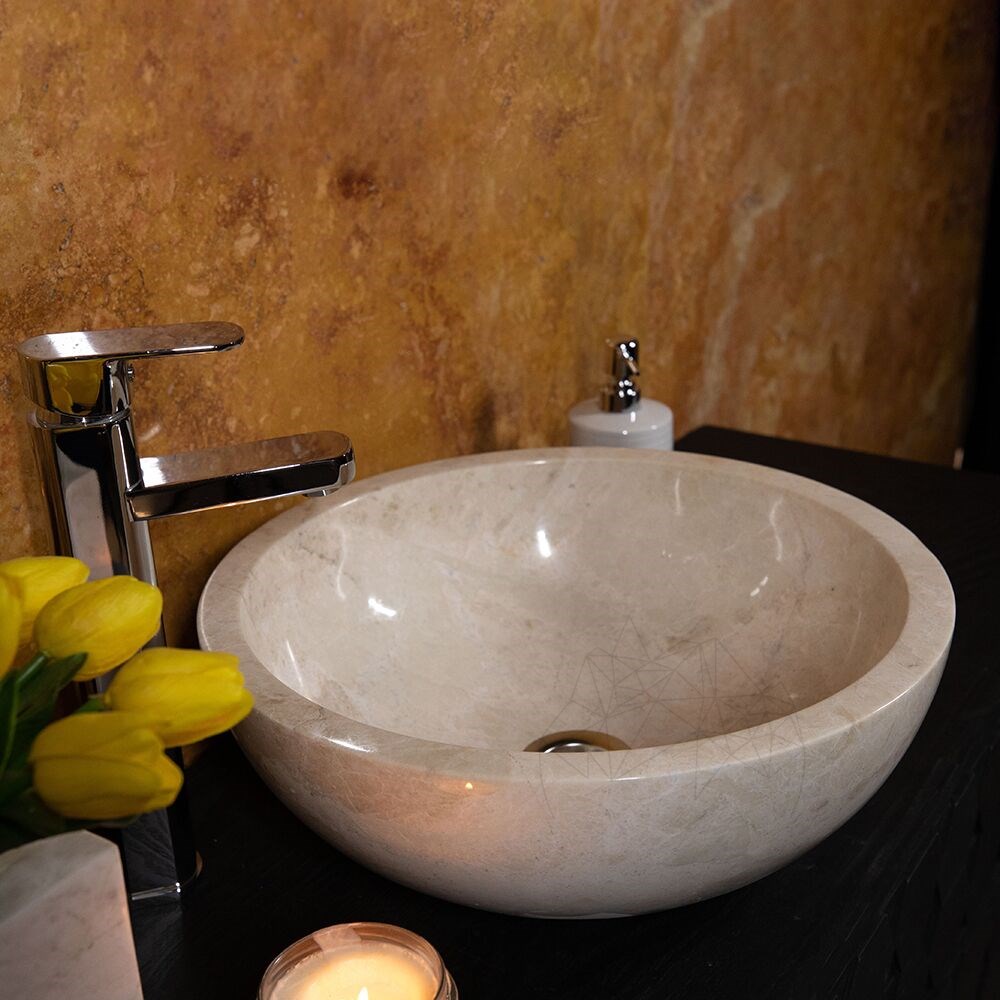 Simpla in aparenta si delicata, chiuveta de baie din marmura Cappuccino, model RS-5, este un produs rezistent, cu o personalitate aparte. Mai mult chiar, folosita pe un blat din aceeasi piatra sau din lemn, aceasta va ”incalzi” si mai mult atmosfera incaperii respective. Se poate utiliza si in bucatarie. Chiuveta de baie din marmura Cappuccino, model RS-5, se monteaza fara dificultate si se intretine usor cu ajutorul substantelor speciale dedicate pietrelor naturale, de exemplu gama LTP, produse profesionale fabricate in UK. Cu ajutorul acestora, eleganta si durabilitatea chiuvetei de baie din marmura Cappuccino RS-5 vor ramane neschimbate foarte mult timp.