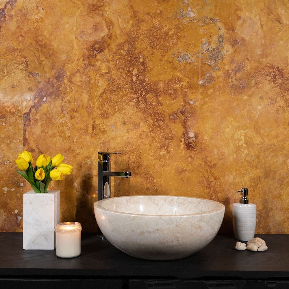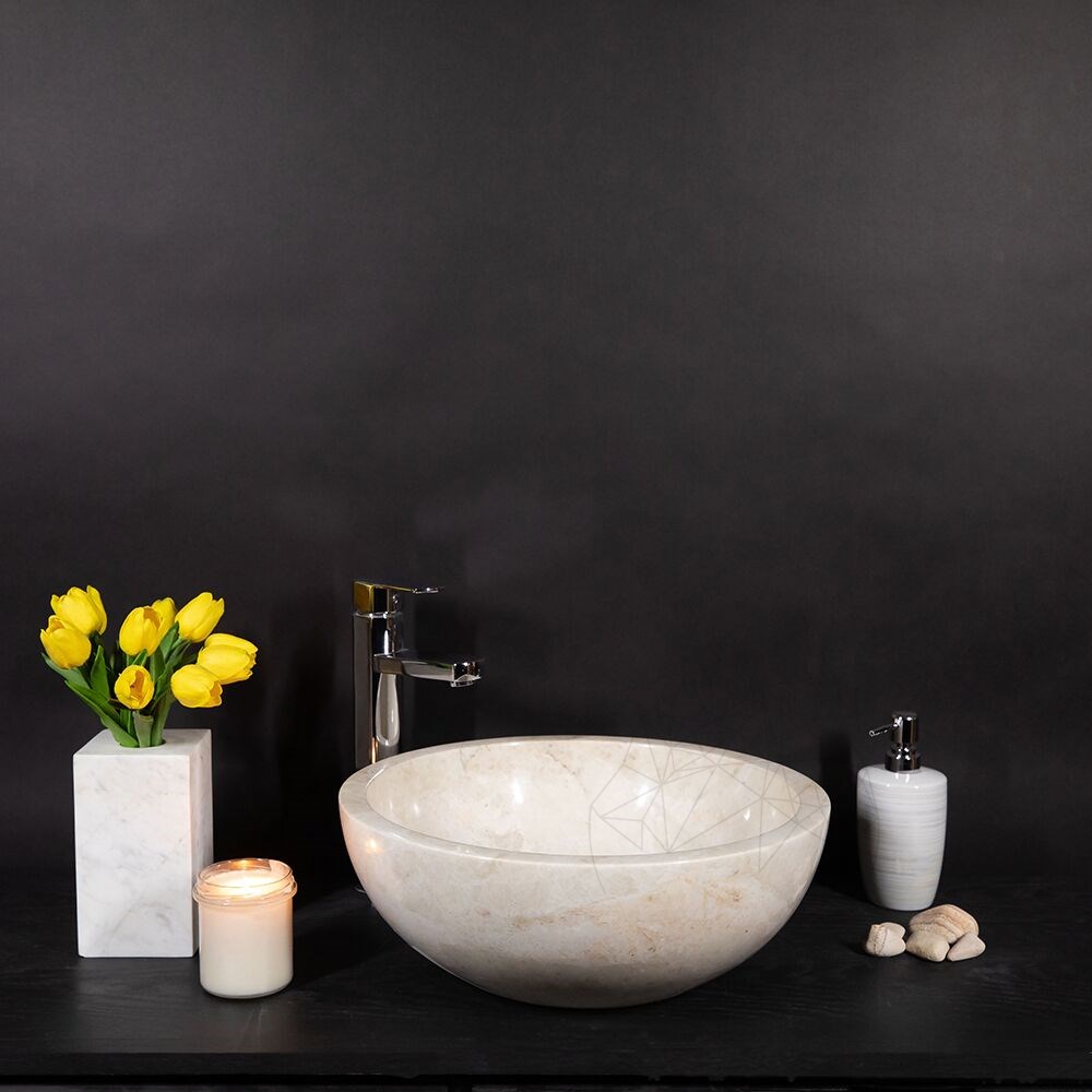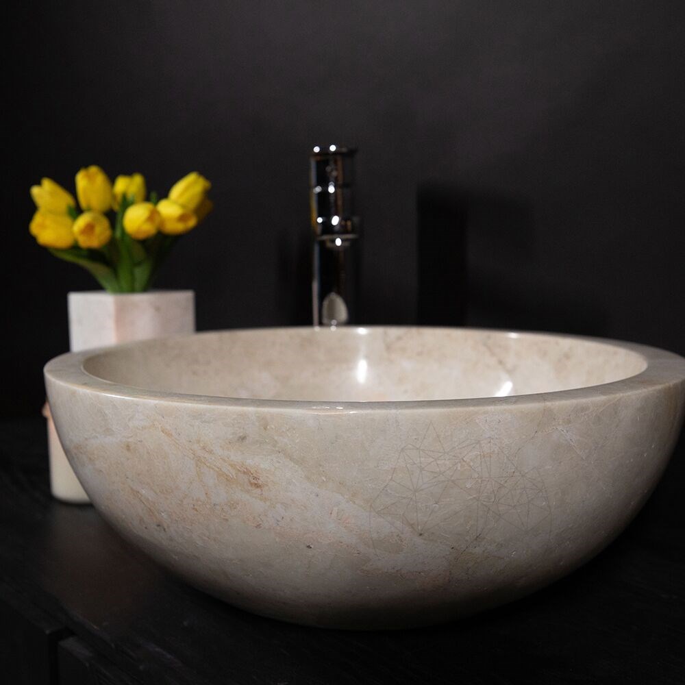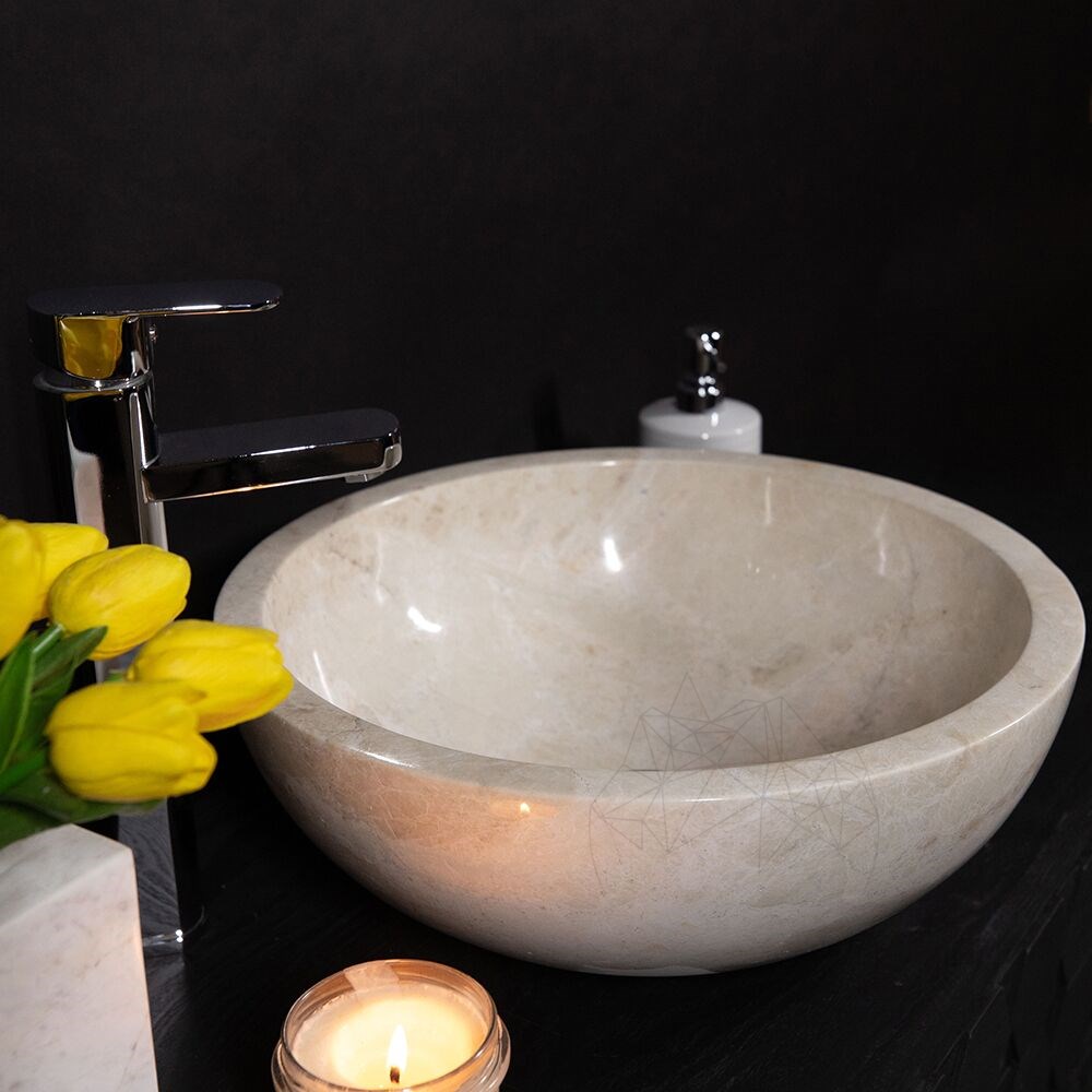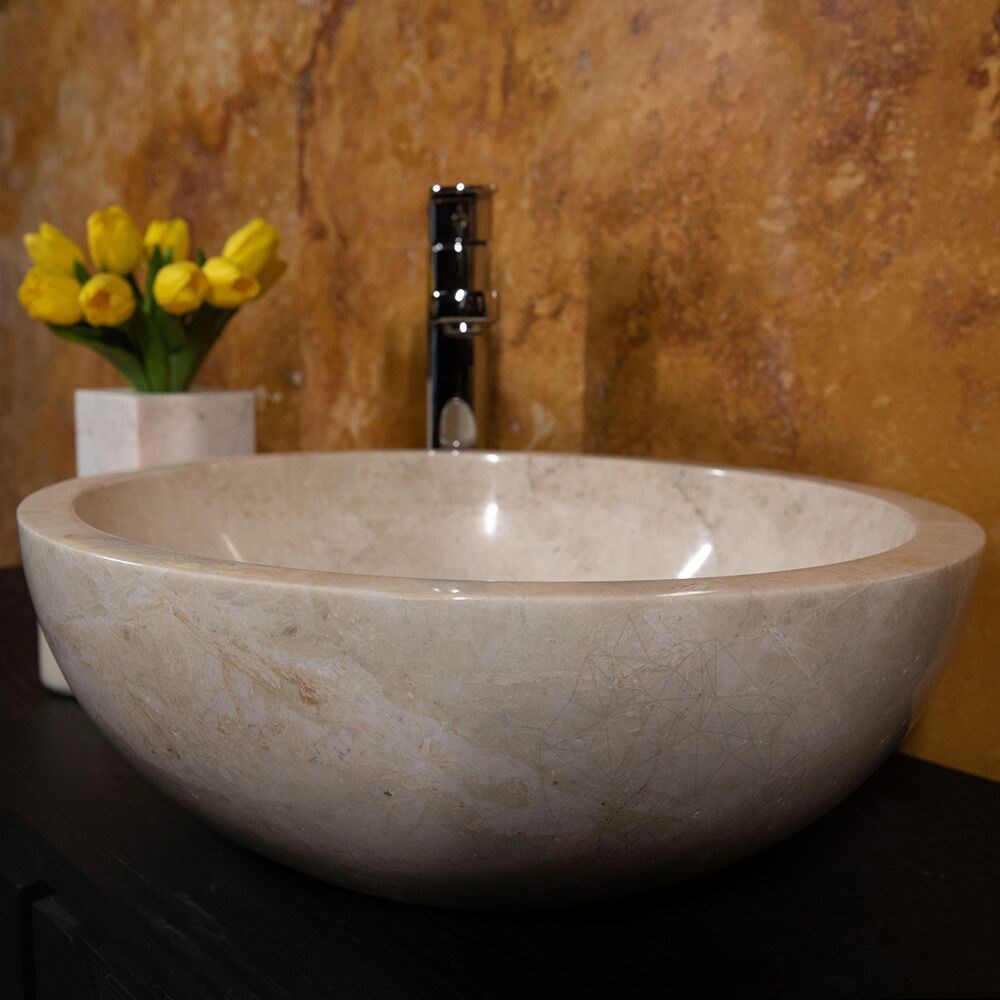 Simpla in aparenta si delicata, chiuveta de baie din marmura Cappuccino, model RS-5, este un produs rezistent, cu o personalitate aparte. Mai mult chiar, folosita pe un blat din aceeasi piatra sau din lemn, aceasta va ”incalzi” si mai mult atmosfera incaperii respective. Se poate utiliza si in bucatarie. Chiuveta de baie din marmura Cappuccino, model RS-5, se monteaza fara dificultate si se intretine usor cu ajutorul substantelor speciale dedicate pietrelor naturale, de exemplu gama LTP, produse profesionale fabricate in UK. Cu ajutorul acestora, eleganta si durabilitatea chiuvetei de baie din marmura Cappuccino RS-5 vor ramane neschimbate foarte mult timp.