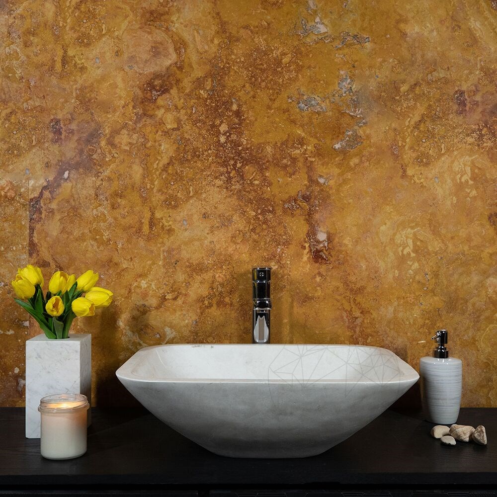 Asociaza chiuveta din marmura Cappucino cu alte elemente din piatra naturala sau lemn, care pun si mai mult in valoare incaperea.
