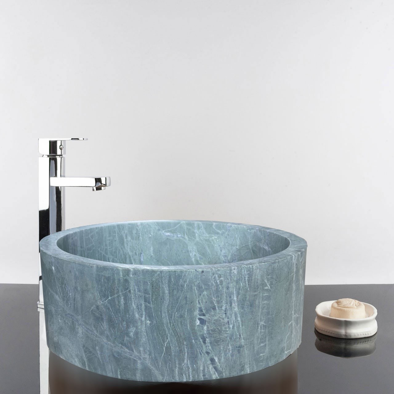 Fabricată din marmură premium, această chiuvetă impresionează prin nuanțele sale elegante de verde, oferind un plus de rafinament oricărui spațiu de baie.
