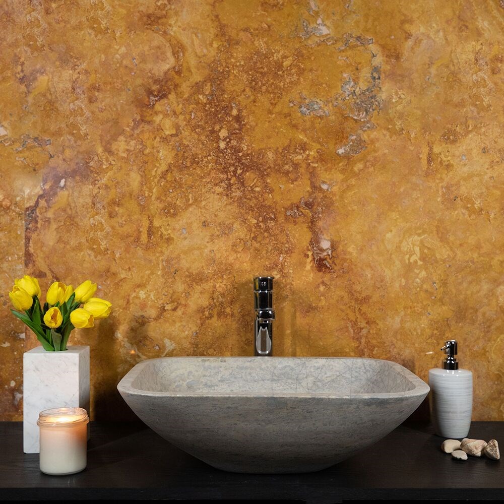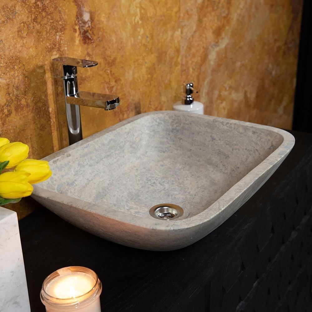 Chiuveta de baie Matia din travertin Silver are un aer aparte care, asociata cu un blat din aceeasi piatra sau chiar pe unul din lemn natur, transforma incaperea intr-una deosebita, intima si moderna simultan. Foloseste-o cu curaj in baia locuintei tale, sau chiar in cele publice.