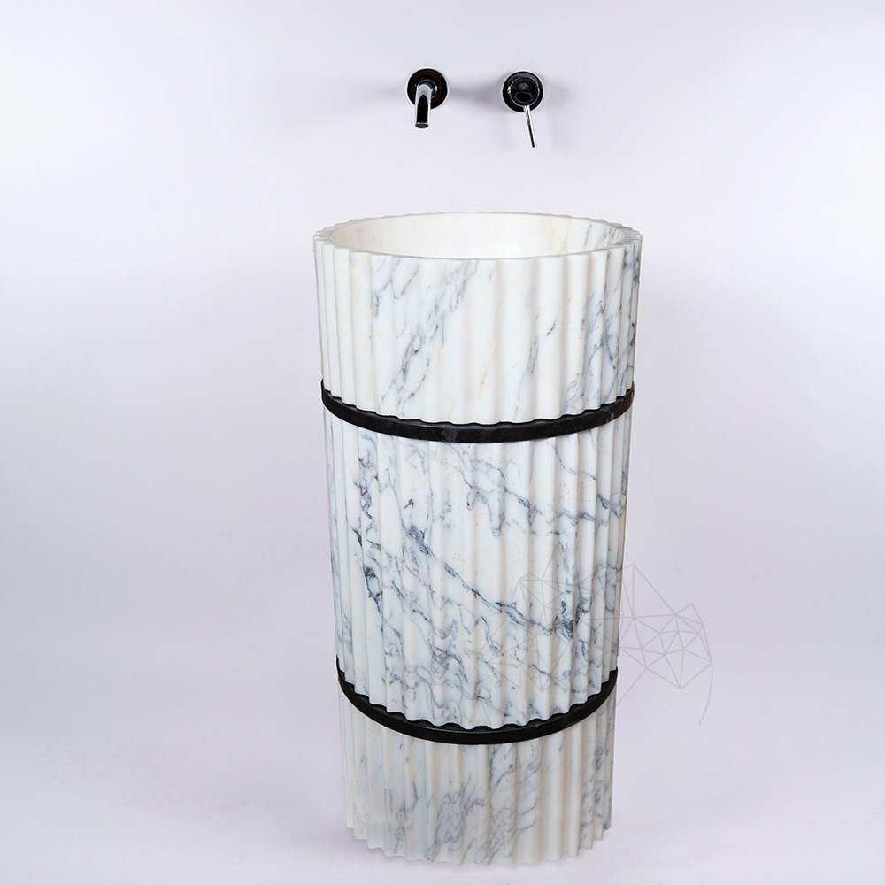Pentru usurinta de transport si montaj lavoarul de marmura este impartit in 3 parti separate prin inele tot de marmura.