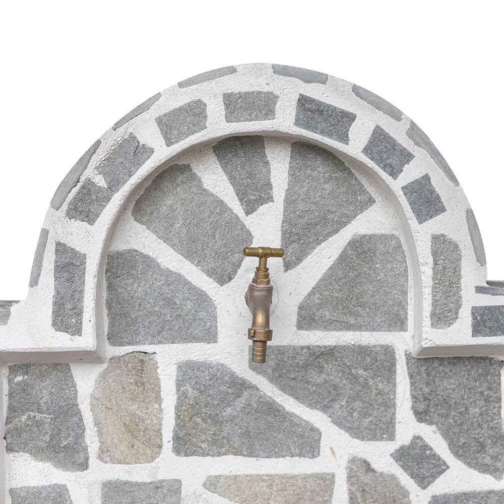 Cismeaua este executata din beton si se compune din doua parti: corpul propriu-zis si cuva de scurgere. Aceste elemente sunt decorate prin placare cu ardezie Kavala, in forma de piatra poligonala.