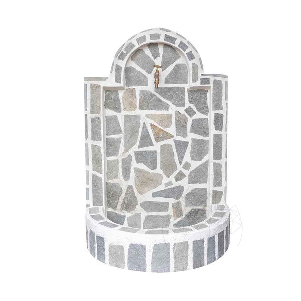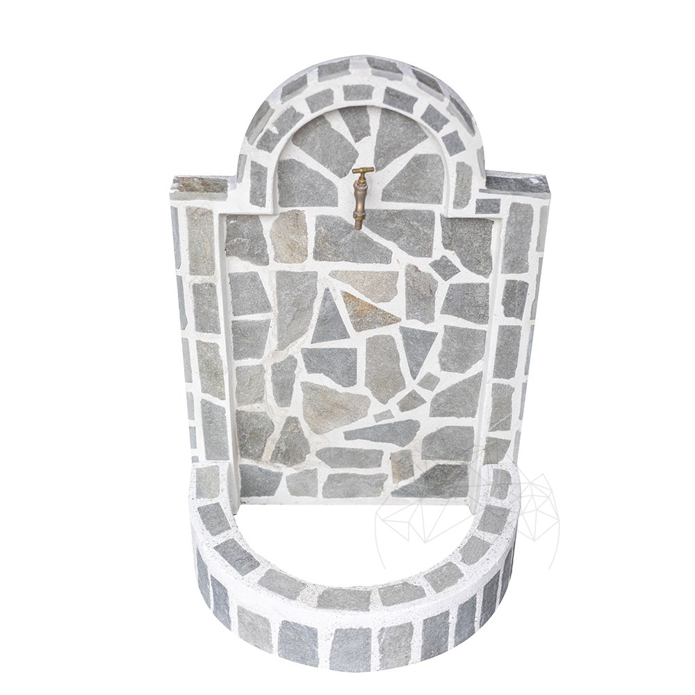 - aspectul cismelei este unul practic, urban si se datoreaza placarii cu ardezie Kavala. Placile se aleg cu grosimi cat mai reduse (1-3 cm), pentru corpul cismelei se foloseste piatra poligonala iar pentru cuva si lateralele corpului placi dreptunghiulare. Astfel aspectul general este unul armonios.